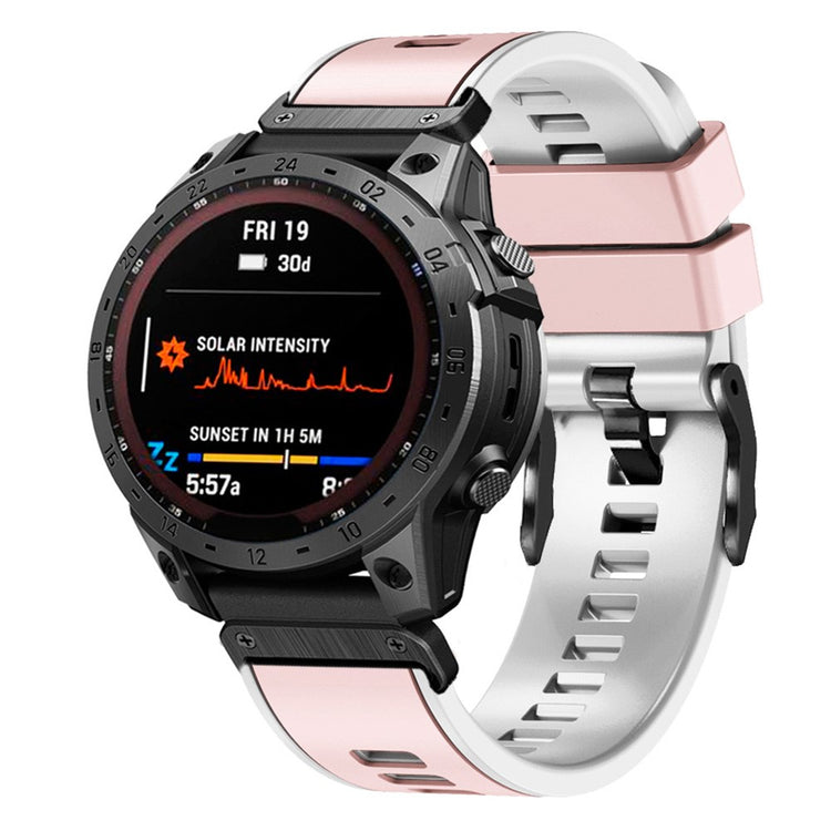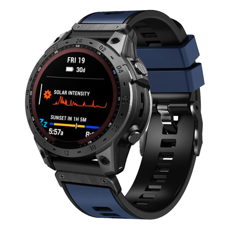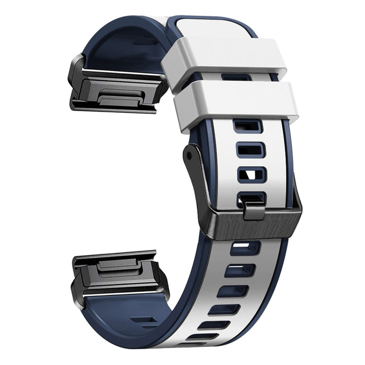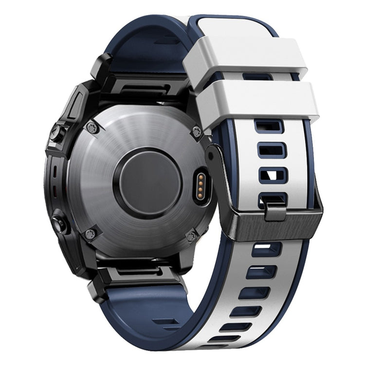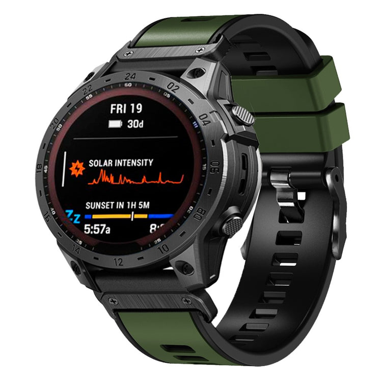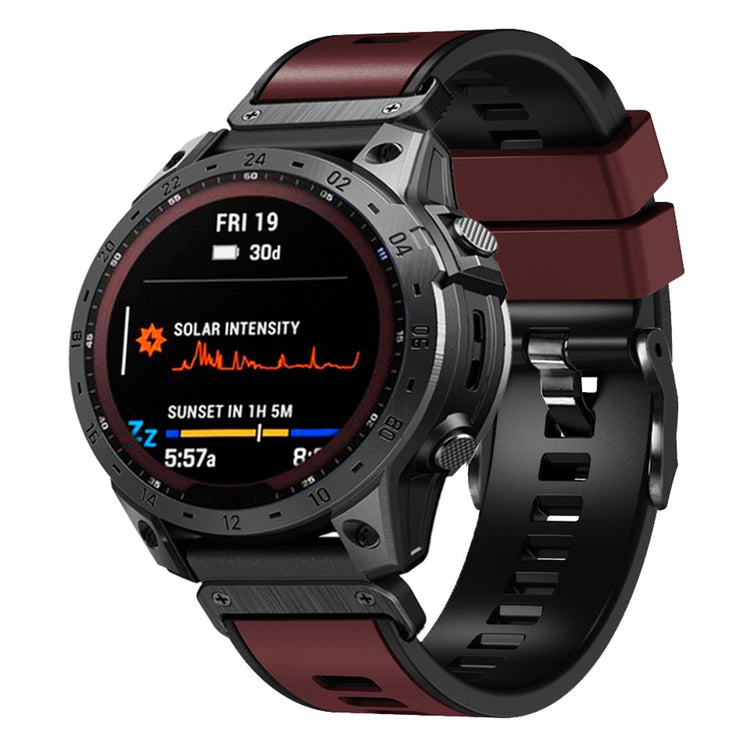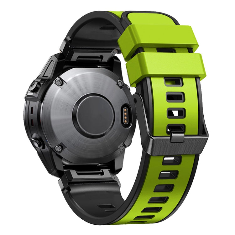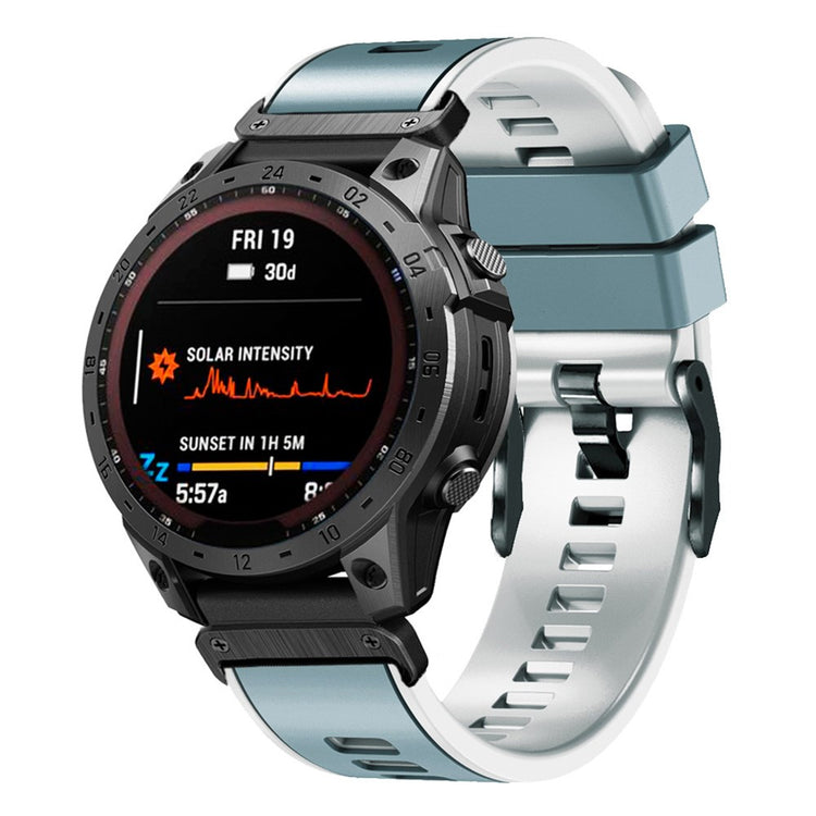 Bytt ut det gamle armbåndet med et mykt, slitesterkt og vanntett sportsarmbånd laget av miljøvennlig silikon. Det dobbeltfargede designet gir et enkelt og stilrent utseende, mens størrelsen er lett å justere for en komfortabel passform. Dette armbåndet er kompatibelt med en rekke Garmin-modeller, og er det perfekte valget for å møte dine stilbehov.