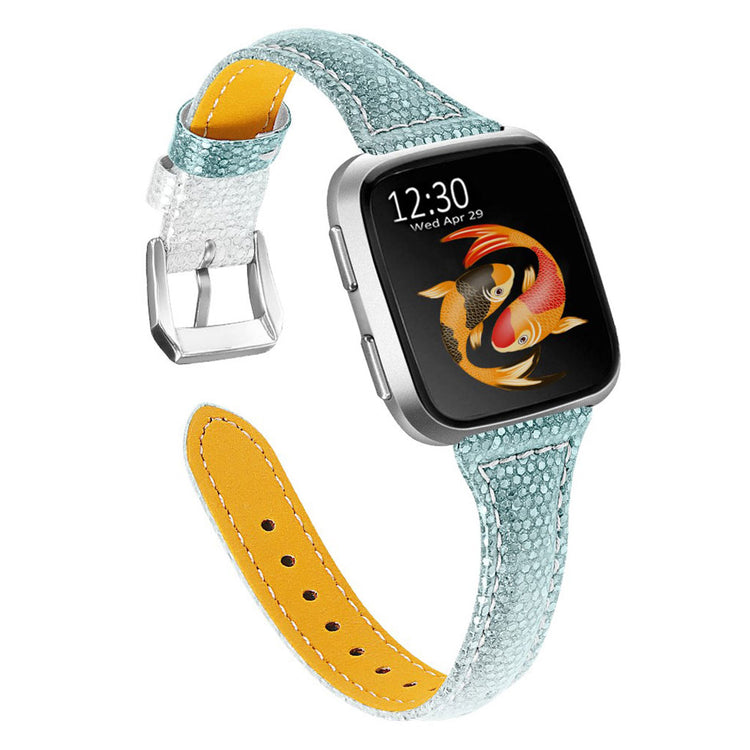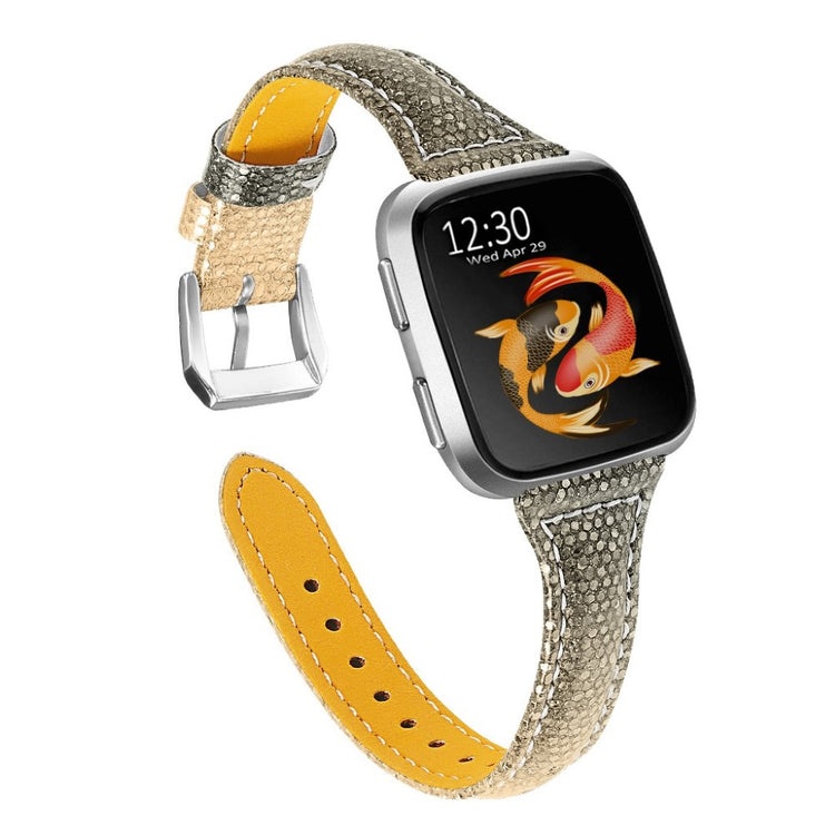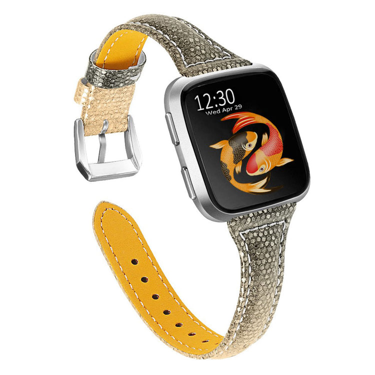 Oppgrader ditt smykkeur med et stilfullt og funksjonelt klokkerem i ekte lær. Dette armbåndet kombinerer høy kvalitet og holdbarhet, og er designet for å motstå svette, noe som gjør det perfekt for daglig bruk. Med sitt grasiøse design tilfører det et elegant preg til enhver antrekk, og den klassiske metallspennen gjør det enkelt å ta på og av. Remmen har flere hull, noe som gir deg muligheten til å justere den etter din størrelse for optimal komfort. Hvis du har en gammel eller ødelagt rem, er dette det perfekte valget for å fornye klokken din. Med en lengde på 12,4 cm + 9,8 cm og en vekt på kun 25 g, er dette et lett og praktisk tilbehør som passer til Fitbit Versa, Versa Lite, Blaze, og Versa 2. Gå ikke glipp av muligheten til å gi klokkeopplevelsen din et løft med dette fantastiske klokkeremmet!