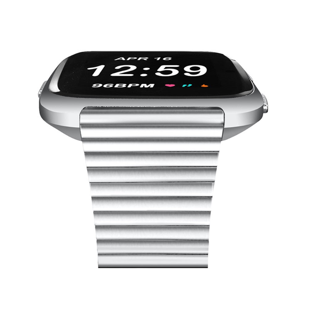 Oppgrader Fitbit Versa-klokken din med denne stilige og slitesterke klokkereimen i premium rustfritt stål. Den teksturerte overflaten gir et moderne preg, og den enkle designen passer til ethvert antrekk.