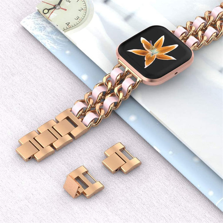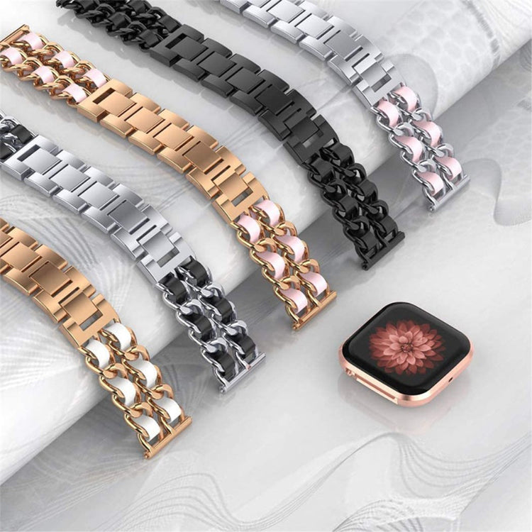 Oppgrader ditt klokkeopplevelse med vårt stål- og PU-lærkjede klokkerem for Fitbit. Denne stilige remmen kombinerer høy kvalitet PU-lær med rustfritt stål, noe som gir en unik og luksuriøs følelse. Den speilpolerte designen er resultatet av en spesiell kaldsmidderteknikk, som gir en elegant glans. Med en foldbar spenne er det enkelt å fjerne ekstra ledd og justere remmen til din håndleddsstørrelse uten bruk av kompliserte verktøy. Dette gjør den til et ideelt alternativ til gamle eller ødelagte remmer, og sikrer at du alltid har en klokkerem som ser bra ut og sitter godt. Denne remmen er tilpasset for Fitbit Versa, Versa 2, Versa Lite og Versa SE, og passer håndleddet fra 5.1 til 8.9 tommer. Gå ikke glipp av sjansen til å forvandle klokken din til et stilig tilbehør!