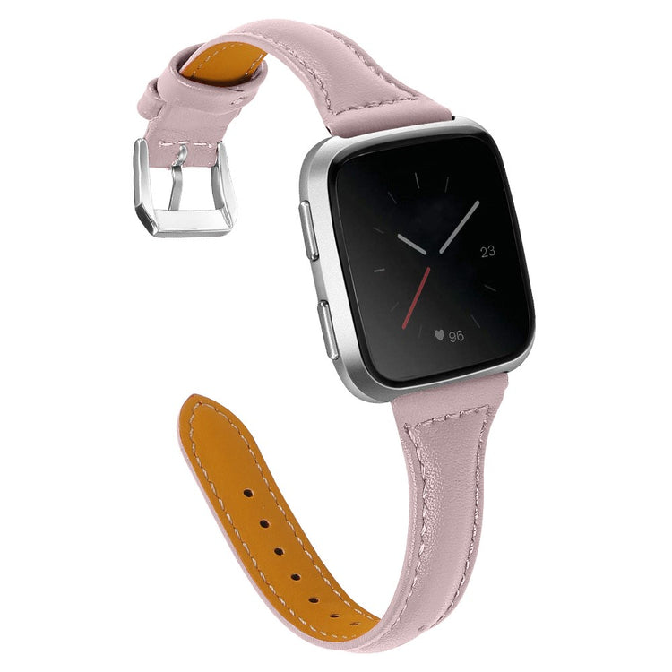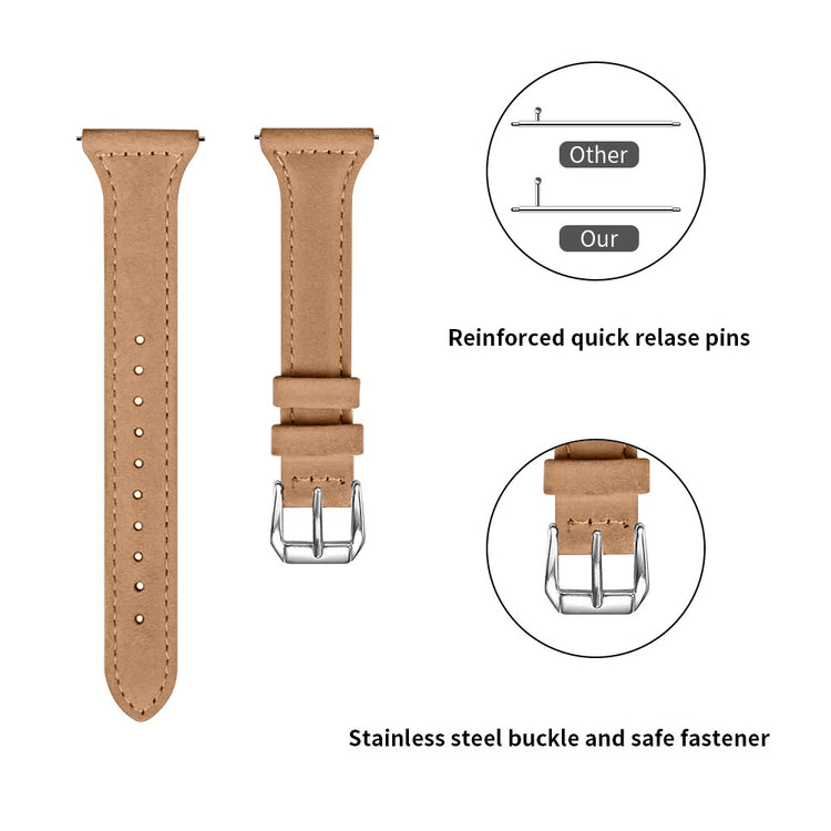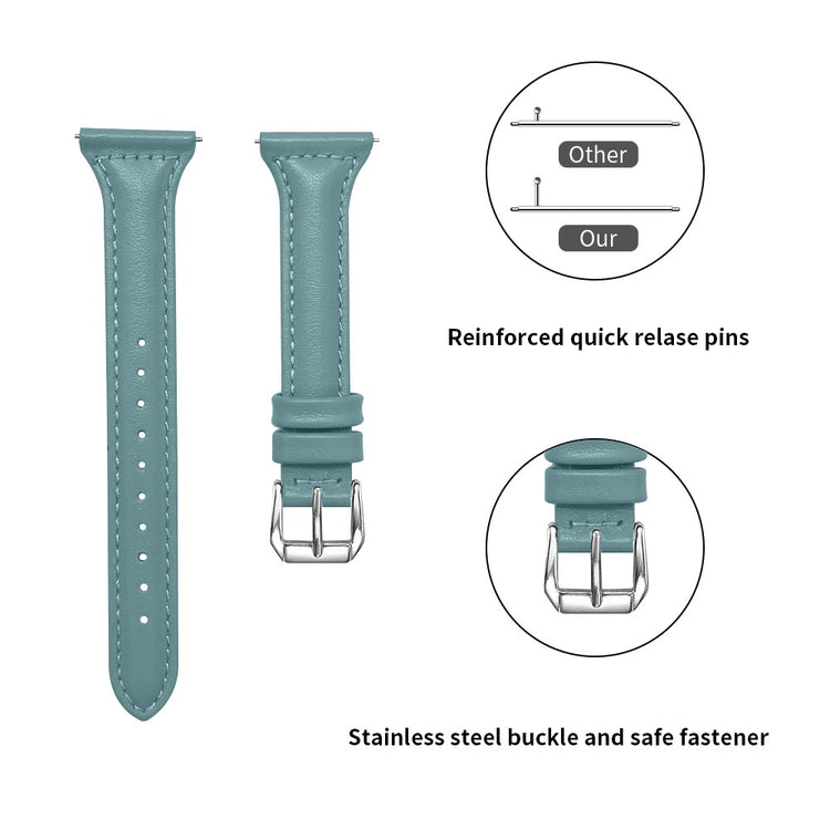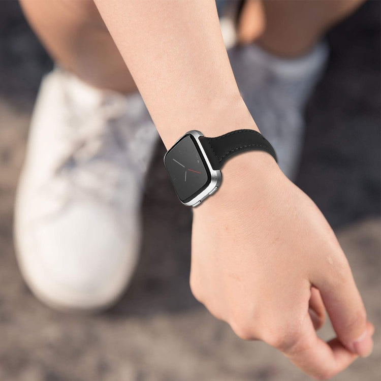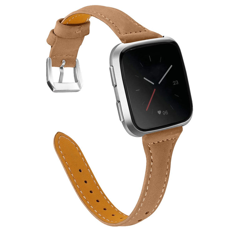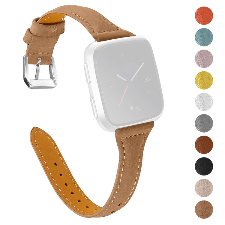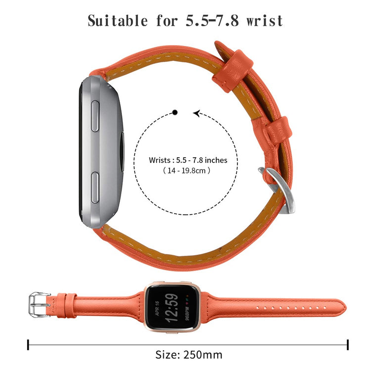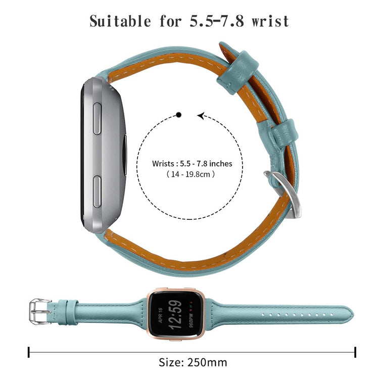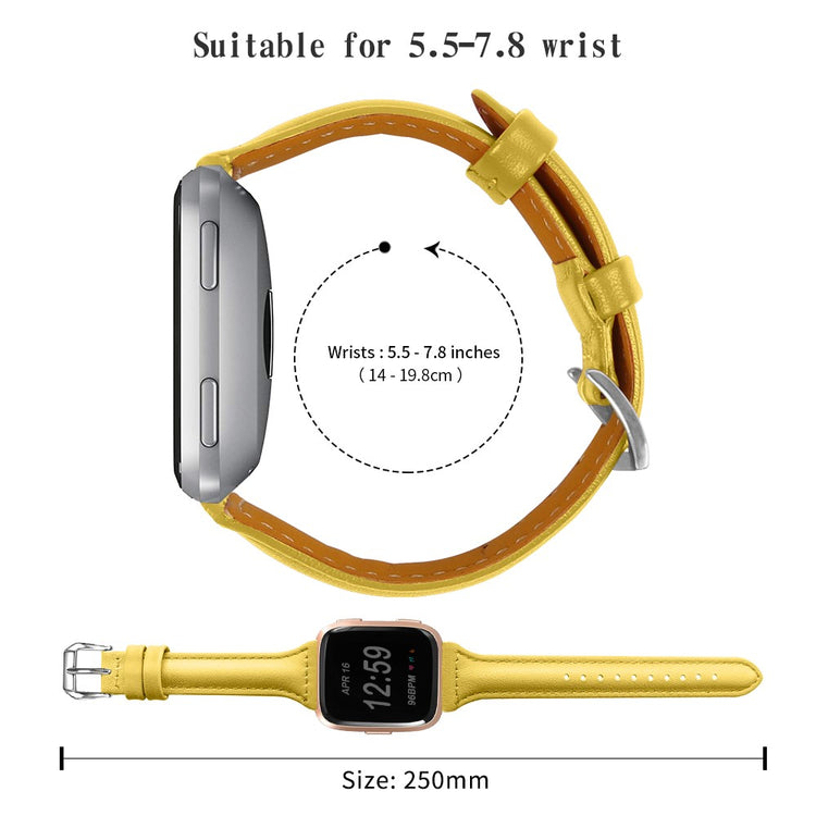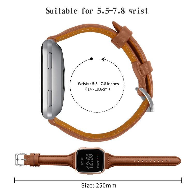 Erstatningsrem til din smartwatch laget av førsteklasses ku skinn, som gir en myk og komfortabel opplevelse. Den forsterkede hurtigutløserpin-designen gjør det enkelt å installere og fjerne remmen, mens den polerte rustfrie stålen gjør størrelsesjusteringer enkle. Passer perfekt til Fitbit Versa 2, Versa, Versa Lite og Versa SE, og er et ideelt valg for å erstatte en gammel eller ødelagt rem.