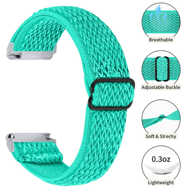 Dette er et justerbart og elastisk klokkerem laget av høy kvalitets elastisk flettet materiale, som er slitesterkt og motstandsdyktig. Klokkeremmen gir en komfortabel bæreopplevelse uten å skade håndleddet, og kan enkelt justeres etter behov. Den passer til Fitbit Versa 2, Fitbit Versa, Fitbit Versa Lite og Fitbit Versa SE, med håndleddsmål fra 5,5 til 8,1 tommer.