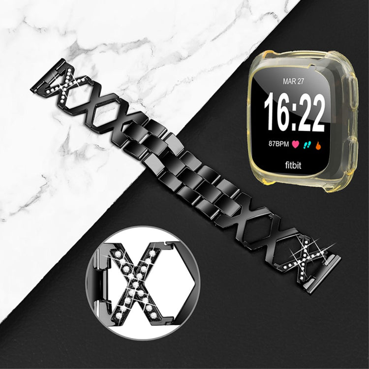 Oppgrader stilen din med vårt tilbehør til smartklokker som passer til Fitbit Versa, Versa 2, Versa Lite og Versa SE. Dette produktet har flere gode grunner til at du bør vurdere å kjøpe det. Først og fremst er det laget av høy kvalitet 304 rustfritt stål, noe som gjør det både sterkt og holdbart. Det unike X-formede designet, utsmykket med eksklusive bling rhinesteiner, tilfører en luksuriøs touch til håndleddet ditt, samtidig som det er slankt og elegant. Monteringen er også enkel; du trenger bare fingeren til å løsne låsemekanismen, som gjør at du kan justere størrelsen på remmen uten verktøy. I tillegg har vi inkludert et anti-ripes klokkehus laget av gjennomsiktig TPU, som beskytter klokken mot fall, riper og andre skader. Med en håndleddsomkrets på 5,5-8,1 tommer, er dette produktet både stilleggende og praktisk. Gi din smartklokke et nytt liv med vår elegante rem og beskytter!
