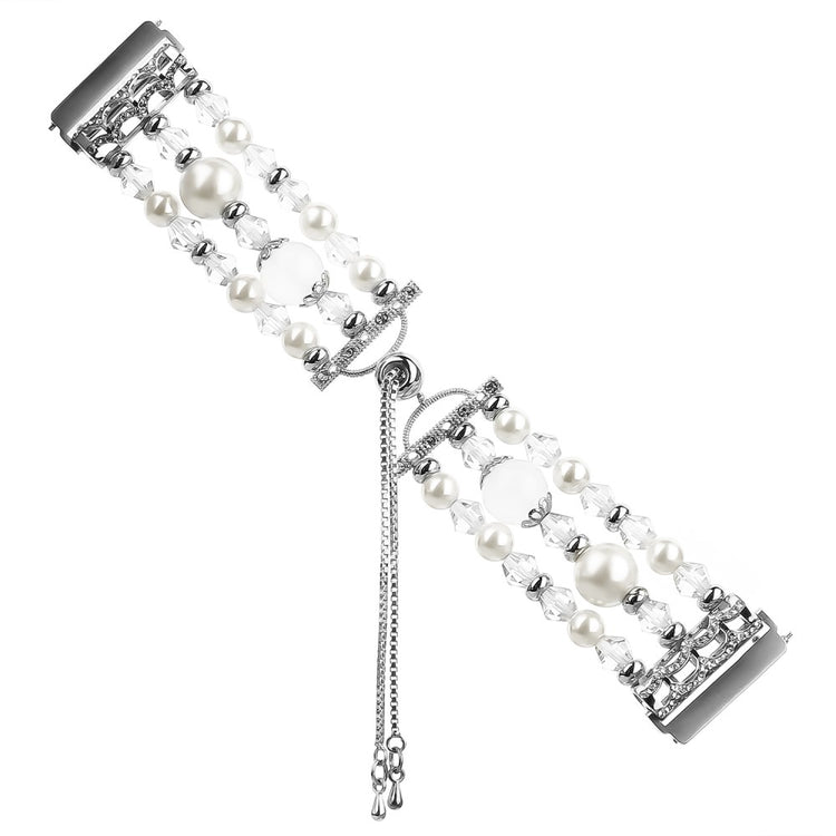 Stilig armbånd laget av agate- og krystallperler som gir et unikt preg til ditt smartklokke, perfekt for kvinner. Armbåndet har en justerbar glidelås som sikrer en behagelig passform uten behov for verktøy, og den glatte overflaten gir komfort uten å skade huden. Et ideelt erstatningsarmbånd for din gamle eller ødelagte klokke.