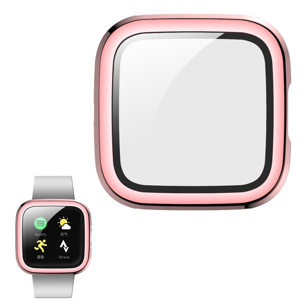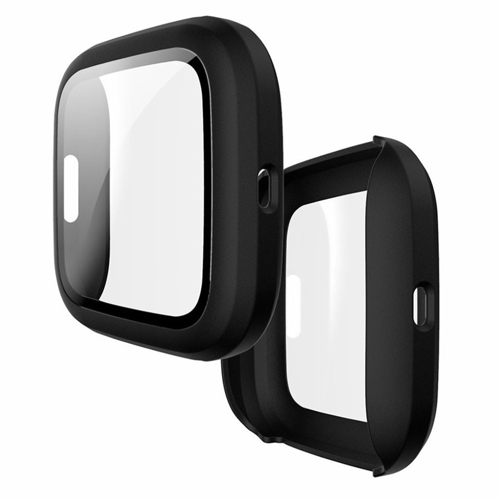 En Fitbit Versa 2 skjermbeskytter holder skjermen på klokken fri for riper og smuss, mens et etui beskytter selve klokken mot støt og hverdagsslitasje.
