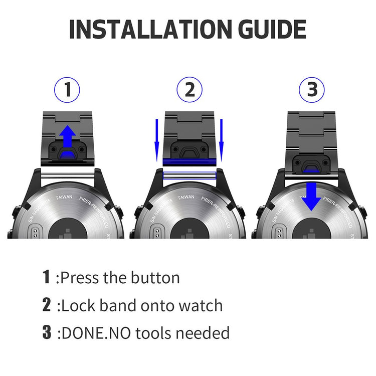 Bytt ut den gamle, ødelagte klokkeremmen med denne stilige og holdbare remmen laget av premium titan stål. Designet tilbyr fint håndverk og er komfortabel å ha på. Verktøy for enkel demontering av lenkene følger med, slik at du enkelt kan tilpasse din smartklokke.