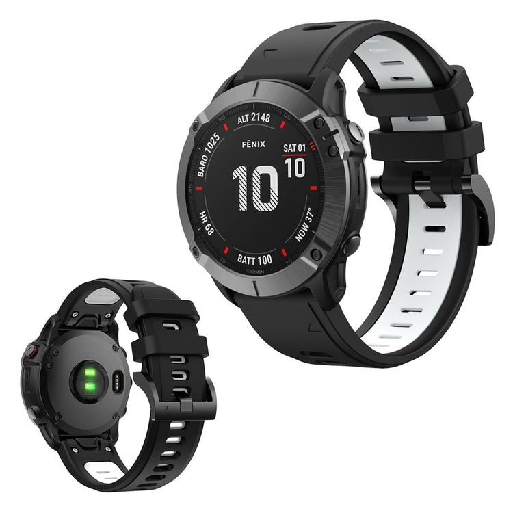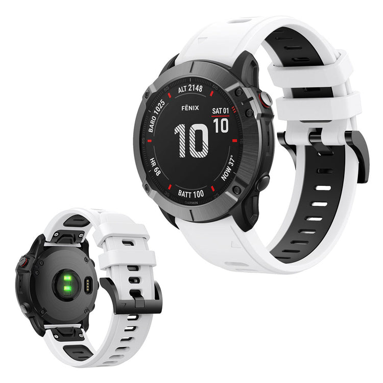 Dette justerbare, hurtigtøyelige silikonremmen er laget av førsteklasses materiale og er holdbar for daglig bruk. Den moderat myke overflaten gir komfort ved bruk, og hullene på remmen gjør det enkelt å justere størrelsen etter behov. Denne klokkenserstatningen er enkel å installere og fjerne, og er kompatibel med flere populære Garmin-modeller.