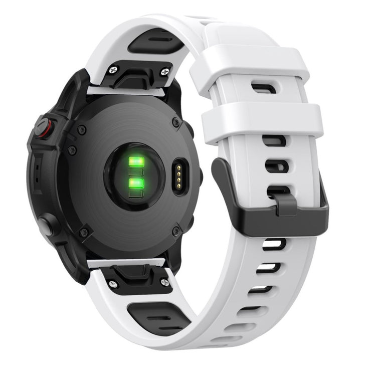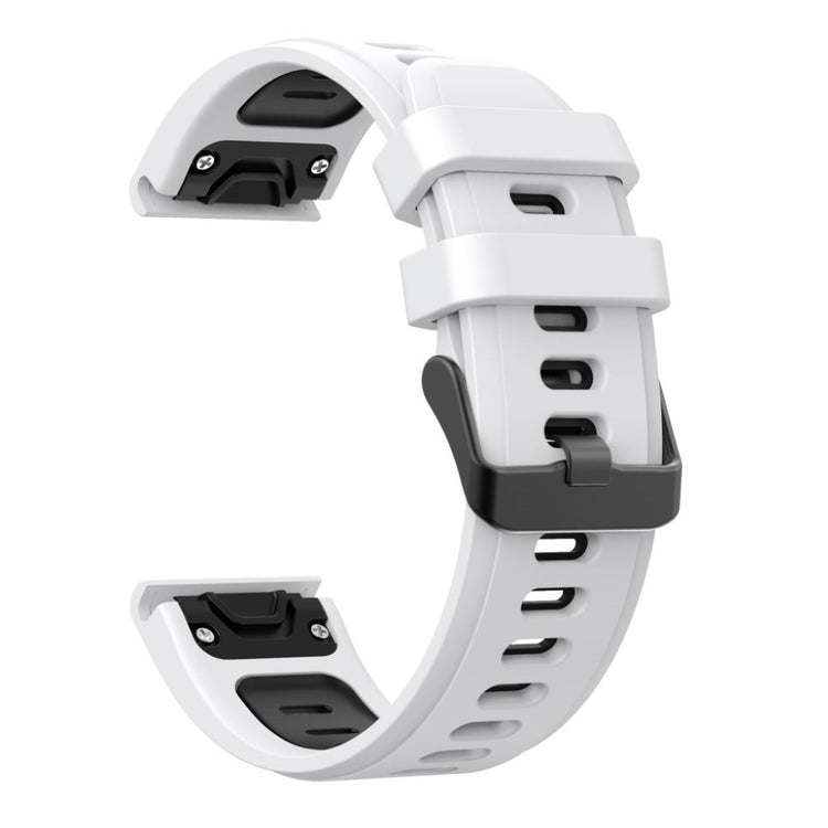 Oppgrader smartklokken din med et dualt farget hurtigutløsnings silikonrem, spesielt designet for Garmin Fenix 7X, 6X og flere andre modeller. Dette armbåndet er laget av høy kvalitet silikon, som gjør det både mykt og komfortabelt å bruke. Det er miljøvennlig og helsevennlig, slik at du kan bruke det med god samvittighet. Med et vanntett og svettebestandig design kan du være trygg på at armbåndet holder seg i topp stand, uansett aktivitet. Den smarte designen med flere hull gir enkel justering for perfekt passform, enten du er på jobb eller på reise. Med lett installasjon og fjerning kan du enkelt bytte stil og tilpasse utseendet ditt etter humør og anledning. Dette armbåndet er kompatibelt med en rekke Garmin-modeller, noe som gjør det til et praktisk valg for enhver smartklokke-eier.