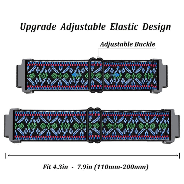 Oppgrader klokken din med et justerbart og elastisk nylon armbånd, perfekt tilpasset for Garmin Forerunner 735xt/220/230/235/620/630. Dette armbåndet er laget av høy kvalitet nylonmateriale, som er motstandsdyktig mot slitasje og tåler daglig bruk. Den elastiske nylonstrukturen gir et unikt og vakkert utseende, noe som gjør klokken din mer personlig. Det er enkelt å justere lengden på armbåndet for optimal komfort, og det er mykt og behagelig å ha på seg hele dagen. Dette armbåndet er den ideelle erstatningen for et gammelt eller ødelagt armbånd og kan installeres og fjernes uten problemer ved hjelp av medfølgende skrutrekkere. Med en lug-størrelse på 20mm og justerbar lengde fra 160mm, passer det håndleddsomkrets fra 160mm til 220mm. Velg dette armbåndet for å gi din smartklokke et friskt og stilfullt preg!