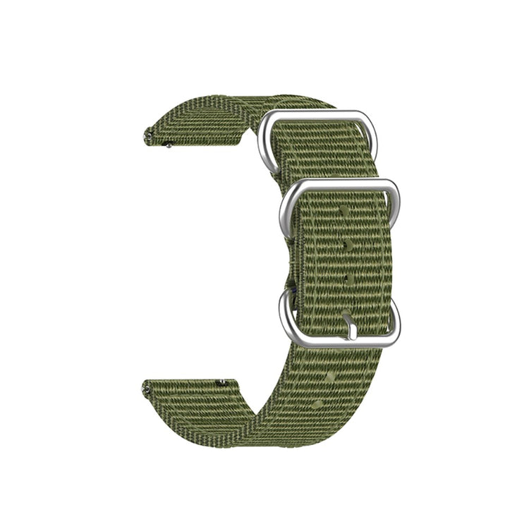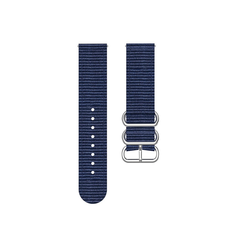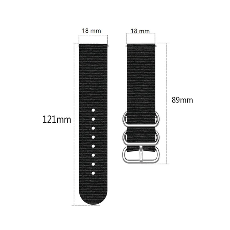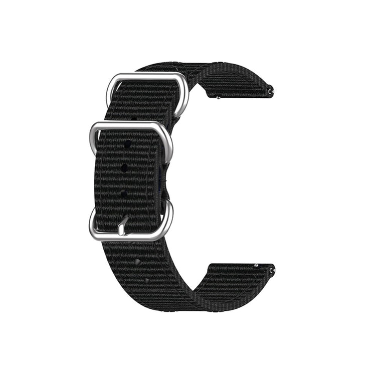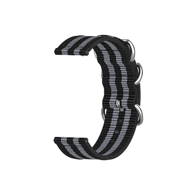 Dette armbåndet er laget av vevd nylonlerret, som gir en komfortabel og pustende følelse. Med sin karakteristiske design og 3 rustfrie stålringer får det et enkelt, men elegant utseende. Armbåndet kan justeres fritt med 10 alternativ hull for å passe ulike håndleddstørrelser.