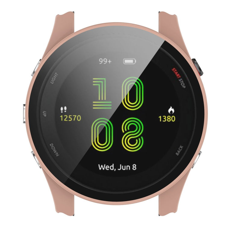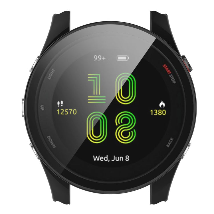 Dette robuste etuiet i hard PC-plast med innebygd skjermbeskytter i herdet glass dekker både skjermen og kantene på din Garmin Forerunner 255S. Det gir 360 graders beskyttelse mot riper, støt og utilsiktede fall.