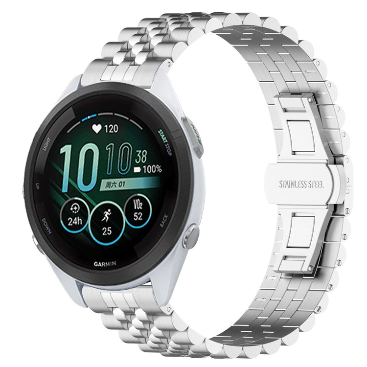 Oppgrader stilen din med et armbånd i rustfritt stål for Garmin Forerunner 265S, 255S og Vivoactive 4S. Dette armbåndet er laget av høy-kvalitets rustfritt stål, som gir en både moderne og elegant look. Hver del av armbåndet er produsert av erfarne håndverkere, noe som sikrer en hard og glatt finish, og det er behagelig å ha på seg. Med en foldende spenne gir dette armbåndet ekstra beskyttelse for klokken din, som gjør det sikrere enn mange andre spenner. Vi har tatt hensyn til hvert eneste detalj i produksjonsprosessen når det gjelder både utførelse, design, og estetikk. Dette armbåndet er spesielt godt egnet for spesielle anledninger som dater, møter, fester, reiser og forretningsarrangementer, perfekt for den stilige kvinnen. Med en lengde på 179mm og en bredde på 18mm, passer det håndleddet fra 5.6 til 8.5 tommer og er kompatibelt med flere Garmin-modeller, noe som gjør det til et ideelt valg for enhver smartwatch-eier.