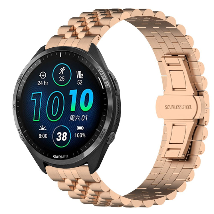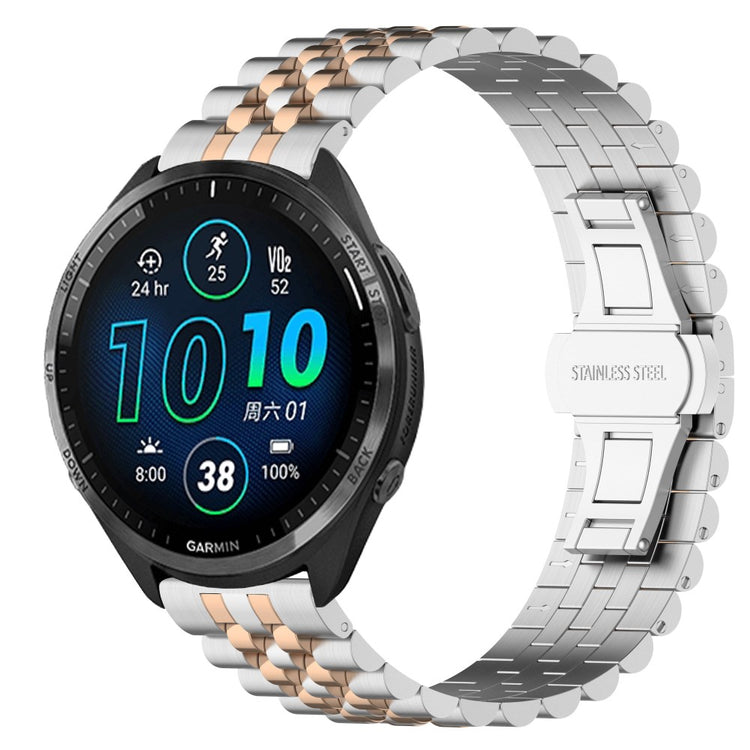 Denne stilige og elegante klokkeremmen i rustfritt stål er det perfekte tilbehøret for din smartklokke, som Huawei Watch GT 4 46mm og Garmin Forerunner-modellene. Laget av høy kvalitet, er hver rem produsert av erfarne håndverkere, noe som sikrer at den føles komfortabel på håndleddet. Den unike foldelåsdesignen gir ekstra beskyttelse til klokken din, noe som gjør den tryggere enn mange andre låsemekanismer. Hver eneste detalj i produksjonsprosessen er nøye vurdert med tanke på arbeid, design og estetikk, noe som gjør denne remmen spesielt egnet for spesielle anledninger, møter, fester, reiser og forretningssituasjoner. Med en lengde på 179 mm og en bredde på 22 mm, passer den perfekt til flere Garmin-modeller, og gir deg både stil og funksjonalitet i enhver setting.