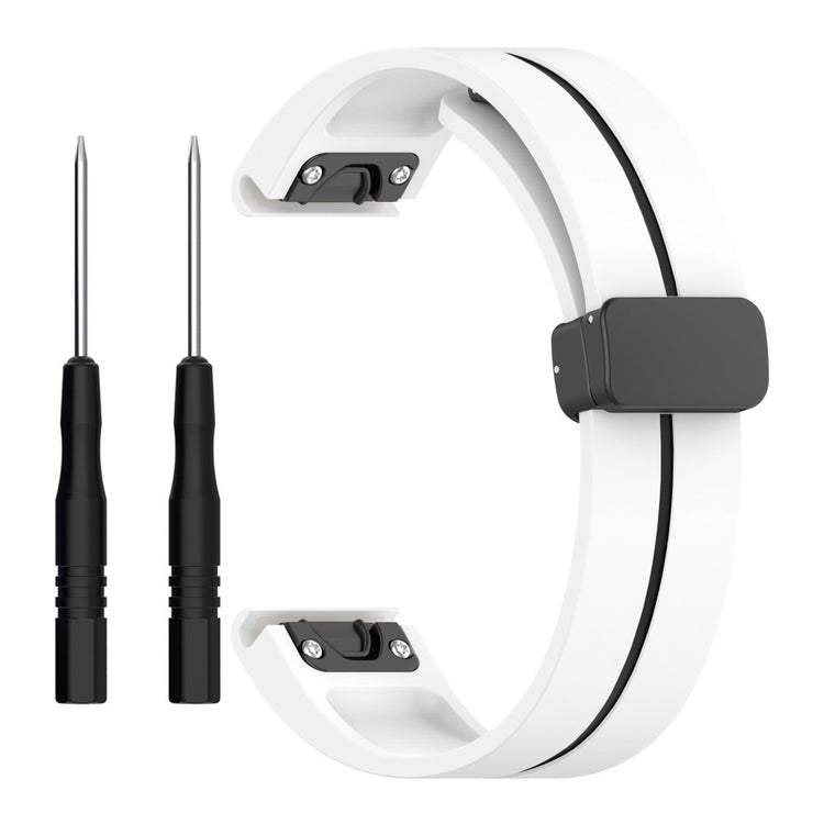Oppgrader stilen din med vårt kvalitetsarmbånd til Garmin Descent MK3, MK3i, Fenix 7S, 6S og 5S. Dette armbåndet er laget av høykvalitets silikon, som er både komfortabelt å ha på seg og enkelt å kombinere med hverdagsantrekket ditt. Materialet er hudvennlig og allergivennlig, noe som gjør det trygt for alle å bruke. Armbåndet er også holdbart, perfekt for daglig bruk. Med et praktisk magnetisk spenne kan du enkelt justere størrelsen etter ditt behov. Dette er en ideell erstatning hvis du har et gammelt eller ødelagt armbånd. Velg vårt armbånd for å gi klokken din et friskt og moderne utseende!