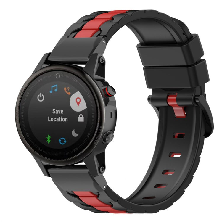 Denne klokkenremmen for Garmin Fenix 7, 7 Solar, 6 GPS, 6 Pro GPS, 6 Sapphire GPS, 5, 5 Plus og Quatix 5 er det perfekte valget for deg som ønsker en kombinasjon av stil og komfort. Laget av høykvalitets silikon, gir den en behagelig følelse mot huden og er skånsom, uten fare for allergiske reaksjoner. Med et metallfeste av premium kvalitet, kan du være sikker på at denne remmen er både holdbar og sikker. Den smarte designen med flere hull gjør det enkelt å justere størrelsen, slik at du får en perfekt passform. Enten du skal på jobb, har en fritidsaktivitet eller deltar på andre daglige anledninger, er dette en ideell erstatning for din gamle eller ødelagte klokkerem. I tillegg finnes det et bredt utvalg av farger, noe som gjør det enkelt å velge en rem som passer til din personlige stil. Gjør klokkeopplevelsen din enda bedre med denne stilige og funksjonelle klokkenremmen!