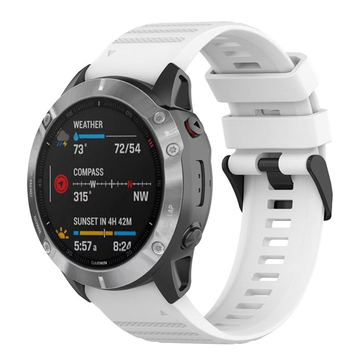 Denne 26mm pustende silikonremmen passer perfekt til Garmin Fenix 6X GPS, 6X Pro og 6X Sapphire GPS. Laget av miljøvennlig silikon, er remmen justerbar og komfortabel å bruke, med et praktisk dobbeltringdesign som sikrer at remmenes ende sitter sikkert. Velg mellom flere farger for å matche din personlige stil, og vær oppmerksom på at remmen kun leveres uten klokke.
