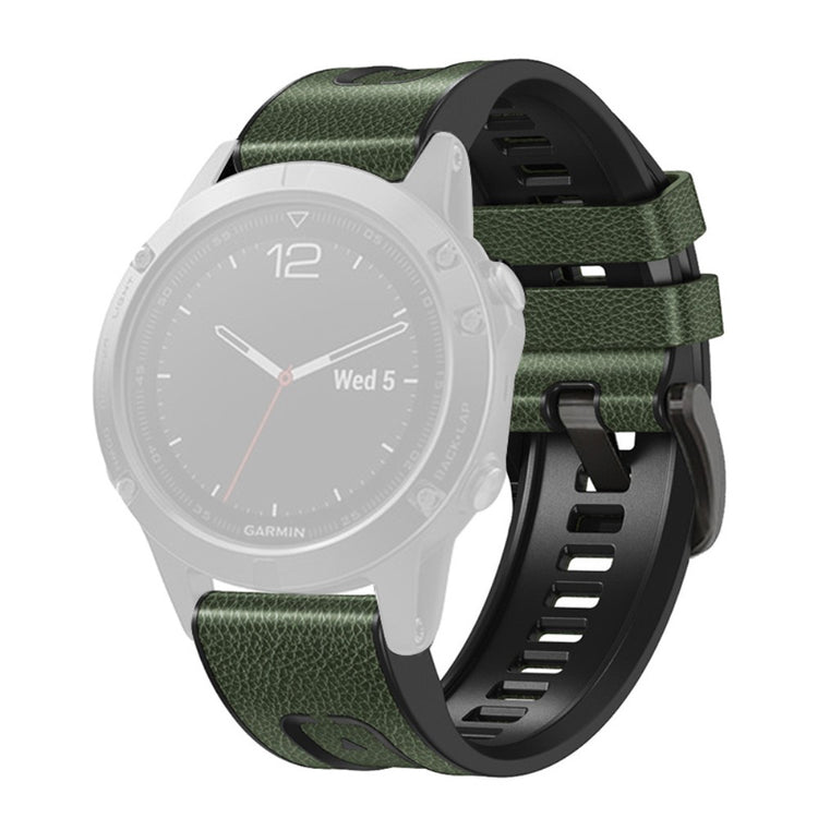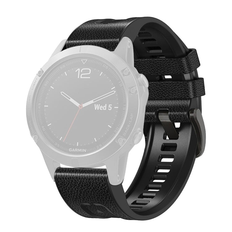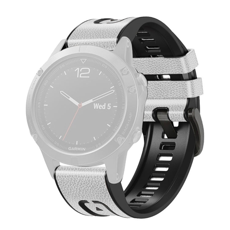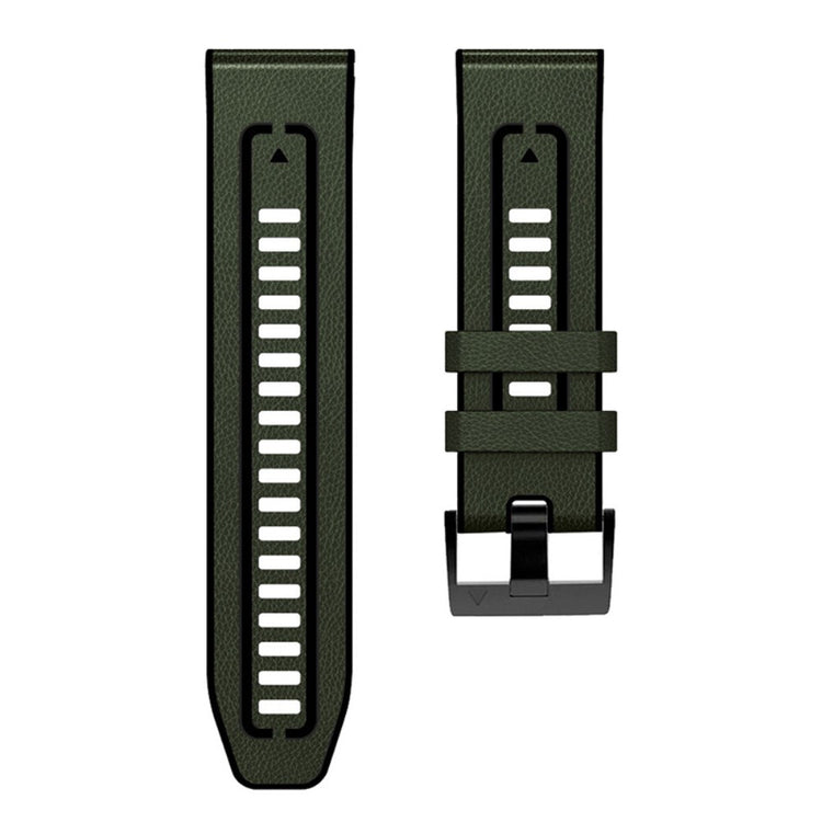Oppgrader ditt Garmin Fenix 7X med vårt hurtigfeste lærdekket silikonarmbånd! Dette armbåndet er laget av premium lær og silikon, som gjør det både holdbart og komfortabelt å bruke. Den klassiske spenne låser klokkeremmen sikkert på plass, noe som gir deg trygghet daglig. Med regulerbare hull kan du enkelt tilpasse størrelsen til din håndleddsomkrets, noe som sikrer en perfekt passform. Dette er den ideelle erstatningen for ditt gamle, ødelagte armbånd. Vårt armbånd er kompatibelt med en rekke modeller, inkludert Fenix 7X og flere andre Garmin-enheter. Vær oppmerksom på at vi har flere alternativer tilgjengelig, noe som gjør det enkelt å finne et armbånd som møter dine behov. Invester i kvalitet og stil med vårt lærdekkede silikonarmbånd!