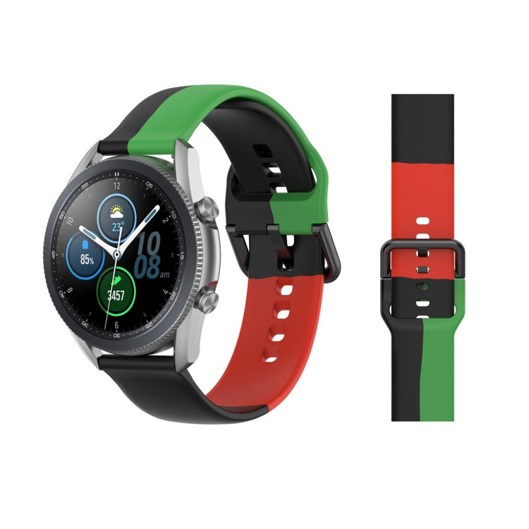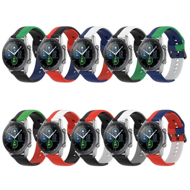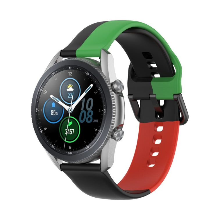 Erstatningsrem laget av premium silikon som er holdbar for daglig bruk og gir komfortabel passform. Justerbar med hull på remmen, passer enkelt til din størrelse. Kompatibel med flere modeller som Samsung Galaxy Watch3 og Huawei Watch GT, og enkel å installere og fjerne.