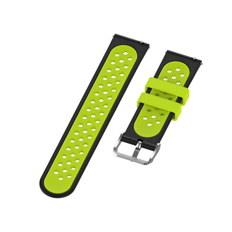 Oppgrader smartklokken din med denne slitesterke og stilige silikonreimen. Laget av miljøvennlig silikon, er denne reimen motstandsdyktig mot slitasje. Det tofarget designet med runde hull gir et moderne og elegant utseende.