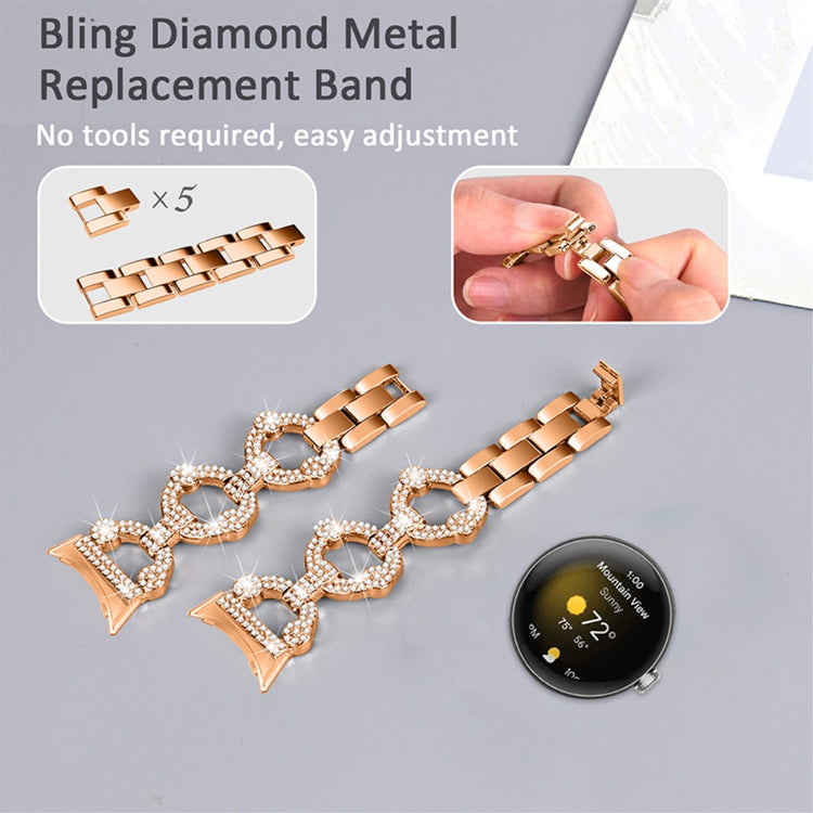 Vildt nydelig Google Pixel Watch Metal og Rhinsten Rem - Pink#serie_3