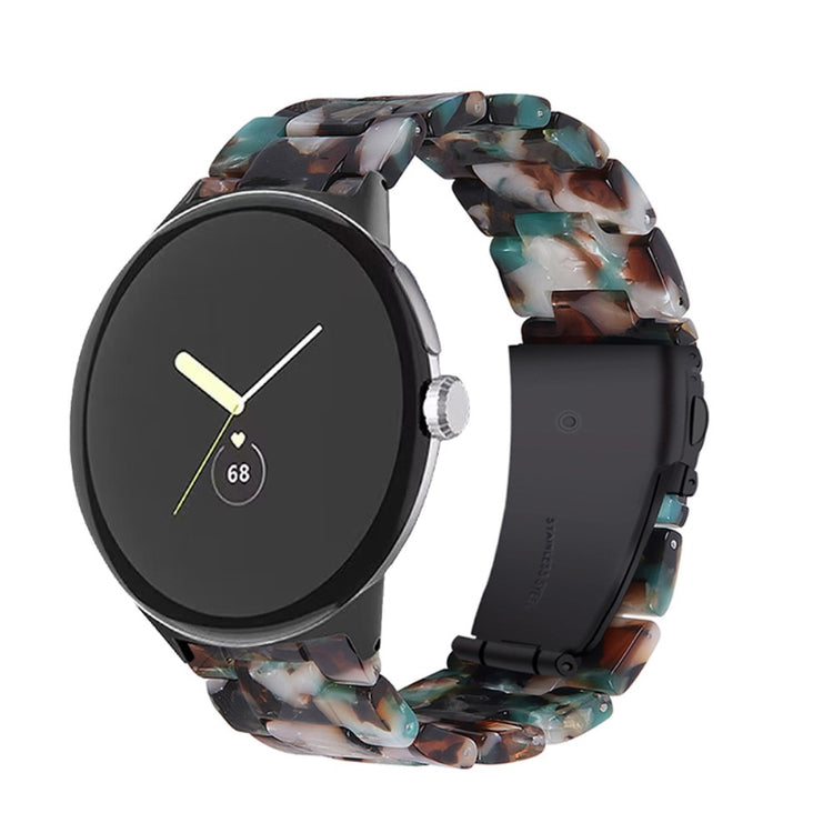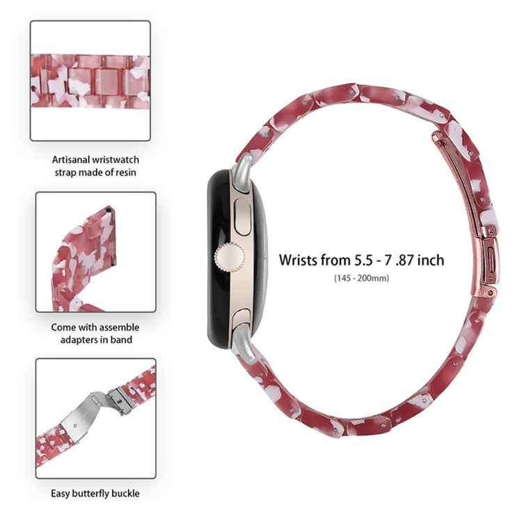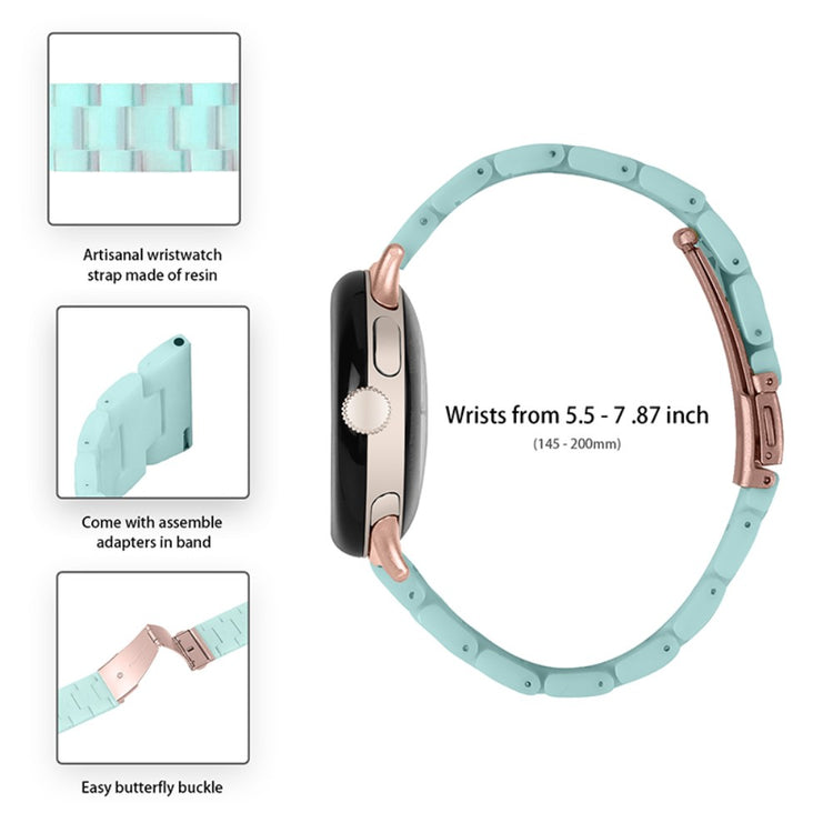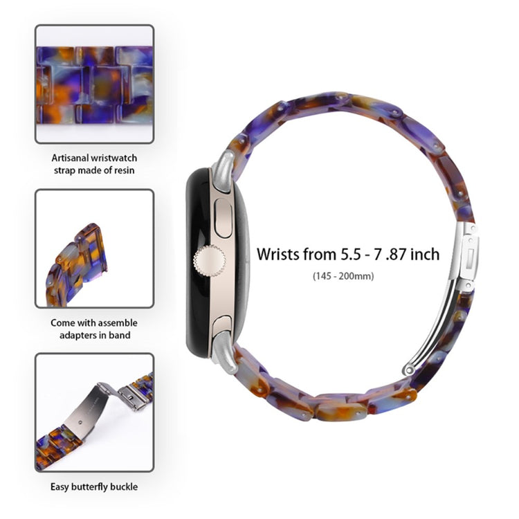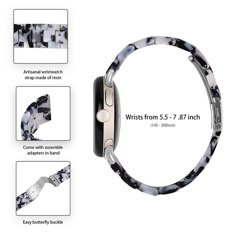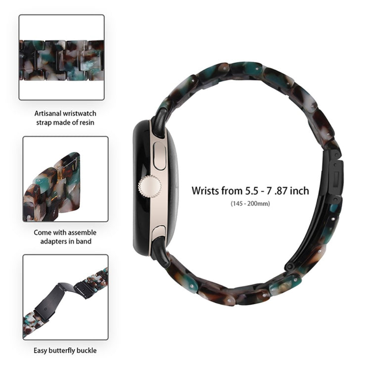 Oppgrader stilen din med vårt stilige og holdbare armbånd laget spesielt for Google Pixel Watch 2! Dette armbåndet er laget av høykvalitets resin-materiale som er både vanntett og rustfritt, noe som sikrer at det holder seg i topp stand i enhver situasjon. Hver del av resin er håndpolert av erfarne håndverkere, og gir en unik finish som skiller seg ut. Den smarte designen med et dobbeltrykk knappe-lås sikrer at armbåndet sitter trygt på håndleddet ditt, samtidig som det er enkelt å ta av og på. Det elegante treperlesystemet i resin sammen med en rustfri ståladapter gir ikke bare en sofistikert stil, men også komfort og fleksibilitet. Dette armbåndet er spesielt egnet for spesielle anledninger, møter, fester, reiser, forretningsarrangementer og stilige sosiale sammenkomster. Gjør et varig inntrykk med et armbånd som kombinerer både funksjonalitet og eleganse!