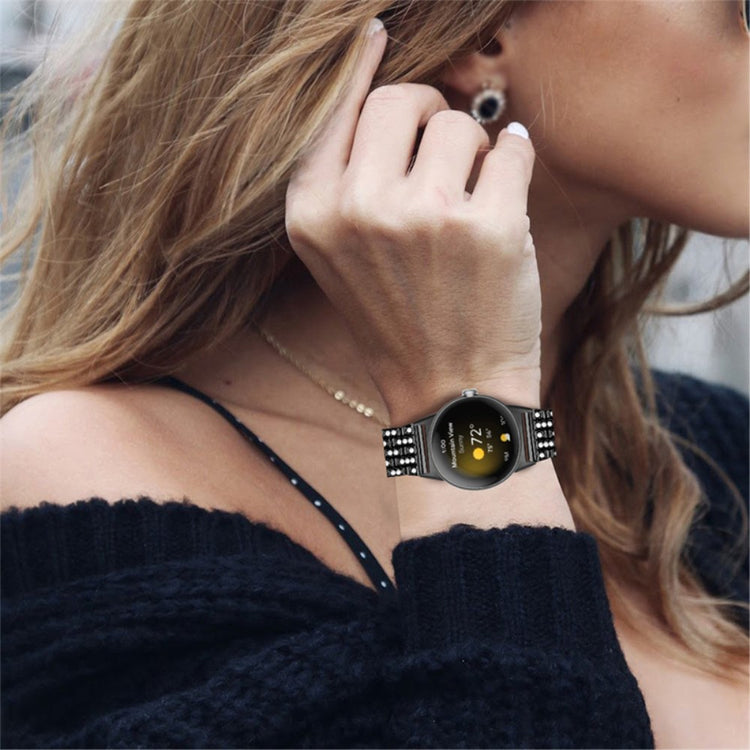 Oppgrader din stil med denne metallremmen til Google Pixel Watch 2 / Pixel Watch 5. Med et unikt og glitrende design av rhinestones, gir den et fasjonabelt og elegant preg til ditt smartwatch. Laget av høykvalitets metallmateriale, er denne remmen både holdbar og luksuriøs. Den er enkel å justere i størrelse, slik at den passer perfekt til håndleddet ditt. Komfortable og pustende materialer sikrer at du opplever ingen irritasjoner eller allergier, og gir en behagelig bæreopplevelse. Denne remmen er en flott erstatning for en ødelagt eller ubrukelig rem, og passer håndledd fra 5.5" til 8.0" (140mm-203mm). Ikke gå glipp av muligheten til å tilføre stil og eleganse til din hverdag!