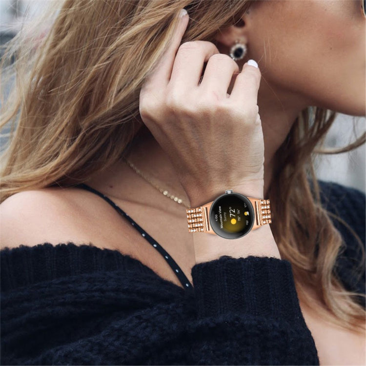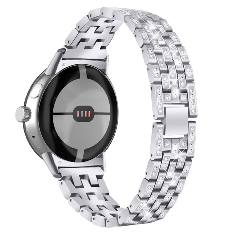 Denne metallreimen til Google Pixel Watch 2 / Pixel Watch har et unikt og skinnende design med 5 rader av rhinestones som gir et fasjonabelt og elegant utseende.
