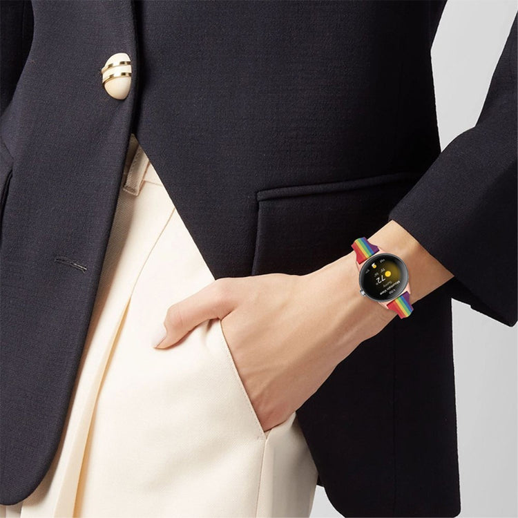 Dette klokkeremmen er laget av høykvalitets ekte lær, som gir en behagelig følelse og enkelt kan matches med din daglige stil. Materialet er hudvennlig og allergivennlig, og spennen er laget av førsteklasses materiale for økt holdbarhet. Med et stilrent design og justerbar lengde, er denne remmen et perfekt valgalternativ for både arbeid og fritidsaktiviteter.