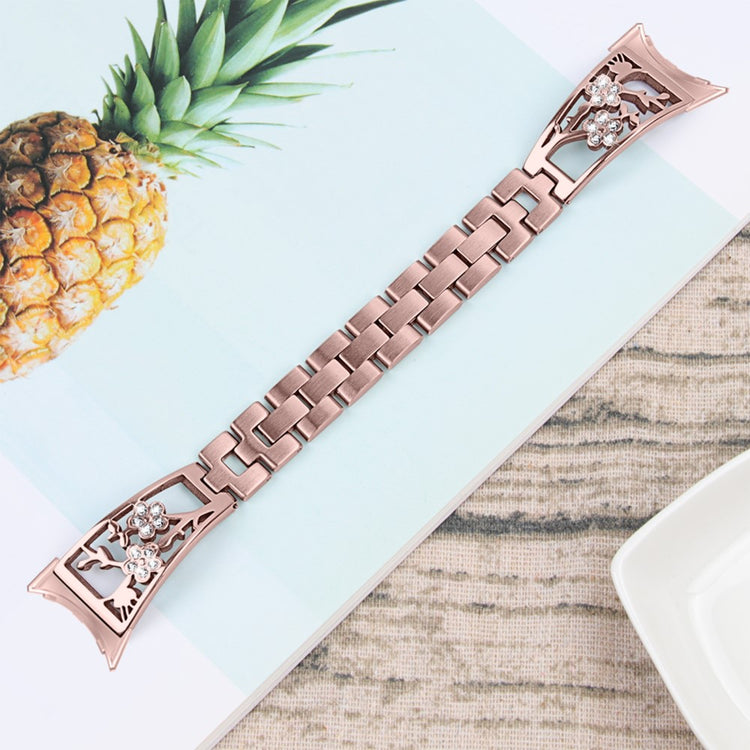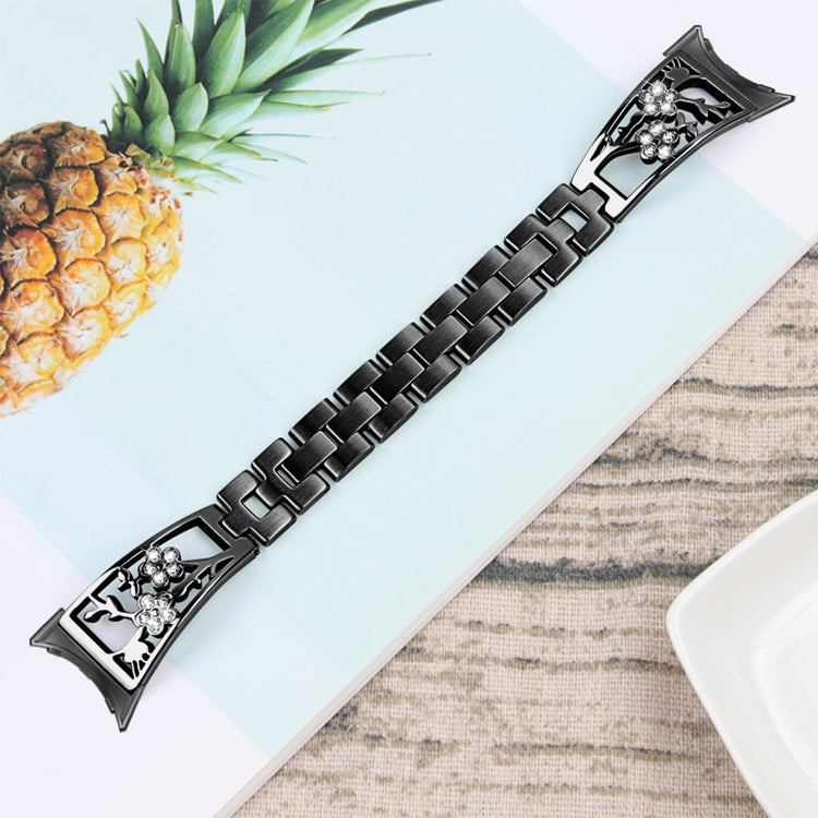 Denne stilige klokkereimen er laget av høykvalitets 304 rustfritt stål, noe som gjør den både sterk og slitesterk. Med et vakkert blomsterdesign og glitrende rhinestones, vil denne reimen gi din smartklokke et elegant og stilig utseende.