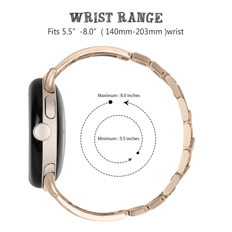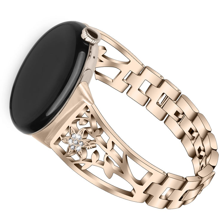 Oppgrader stilen din med vårt metal bånd for Google Pixel Watch 2 / Pixel Watch, som er både moderne og elegant. Laget av høykvalitets 304 rustfritt stål og dekorert med rhinestones, gir dette klokkebåndet et luksuriøst preg. Hver del er håndlaget av erfarne håndverkere, noe som sikrer at båndet er både hardt og glatt, samtidig som det er behagelig å ha på. Den holdbare spennen gir ekstra beskyttelse for klokken din, og er sikrere enn mange andre typer låsemekanismer. Hvert eneste detalj i produksjonsprosessen er nøye vurdert med tanke på håndverk, design, og estetikk. Dette klokkebåndet er spesielt godt egnet for spesielle anledninger, møter, fester, reiser, og forretningsarrangementer hvor du ønsker å gjøre et godt inntrykk.