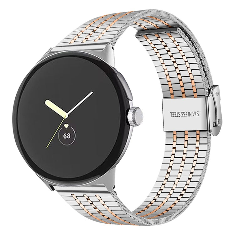 Oppgrader ditt tilbehør med et metallrem til Google Pixel Watch 2 / Pixel Watch. Denne klokken representerer en perfekt kombinasjon av høy kvalitet og elegant design, og er laget av sterkt metallmateriale som gir både stil og holdbarhet. Den er designet for håndledd som måler mellom 5,5 og 8,1 tommer, og hver rem er nøye konstruert av erfarne håndverkere for å sikre en behagelig og glatt passform. Med sitt dobbelspenn-design får du en ekstra sikkerhet for klokken din, noe som gjør den tryggere enn mange andre klips. Hver detalj i produsjonen er grundig vurdert når det gjelder håndverk, design og estetikk. Denne remmen er spesielt egnet for ulike anledninger som dateringer, møter, fester, reiser og forretningsarrangementer, noe som gjør den til et ideelt valg for kvinner som ønsker å se stilige ut i enhver sammenheng.
