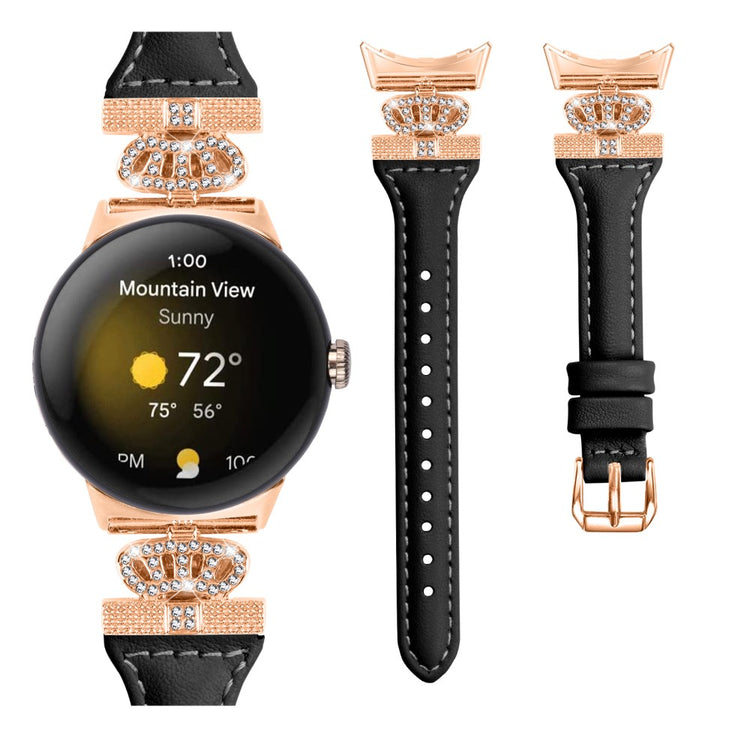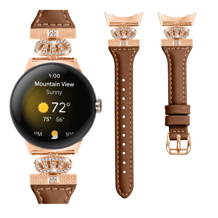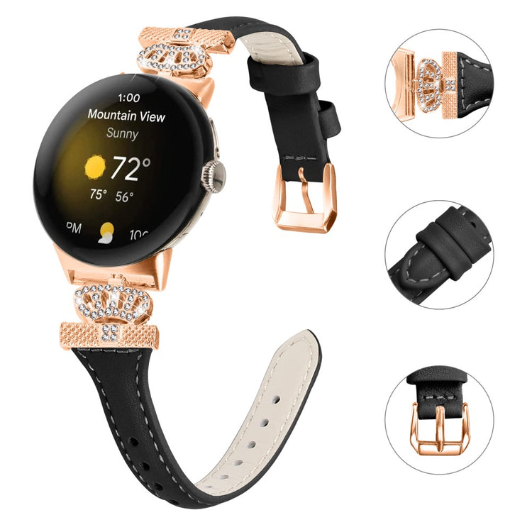 Oppgrader smartwatchen din med vårt stilige armbånd laget for Google Pixel Watch / Watch 2. Dette armbåndet er laget av høykvalitets ekte ku skinn, noe som gir en komfortabel opplevelse for daglig bruk. Den elegante kroneformede koblingen og de blanke rhinestones dekorasjonene gjør smartwatchen enda vakrere og mer moderne. Med et multihullsdesign er det enkelt å justere størrelsen, slik at du alltid får en perfekt passform. Den holdbare lusen av rustfritt stål sikrer at armbåndet varer, noe som gjør det til en ideell erstatning for det gamle eller ødelagte armbåndet ditt. Enten du bruker det på jobb, i fritiden eller andre daglige anledninger, er dette armbåndet et utmerket valg for både kvinner og menn.