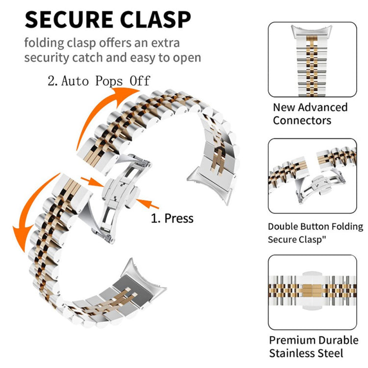 Erstatningsrem til Google Pixel Watch / Watch 2 laget av høykvalitets rustfritt stål, som er både moderne og elegant. Hver rem er produsert av erfarne håndverkere, noe som gir en hard, glatt og komfortabel opplevelse. Den foldbare spennen gir ekstra beskyttelse til klokken din, og er særlig godt egnet for selskaper, møter, reiser og formelle anledninger.