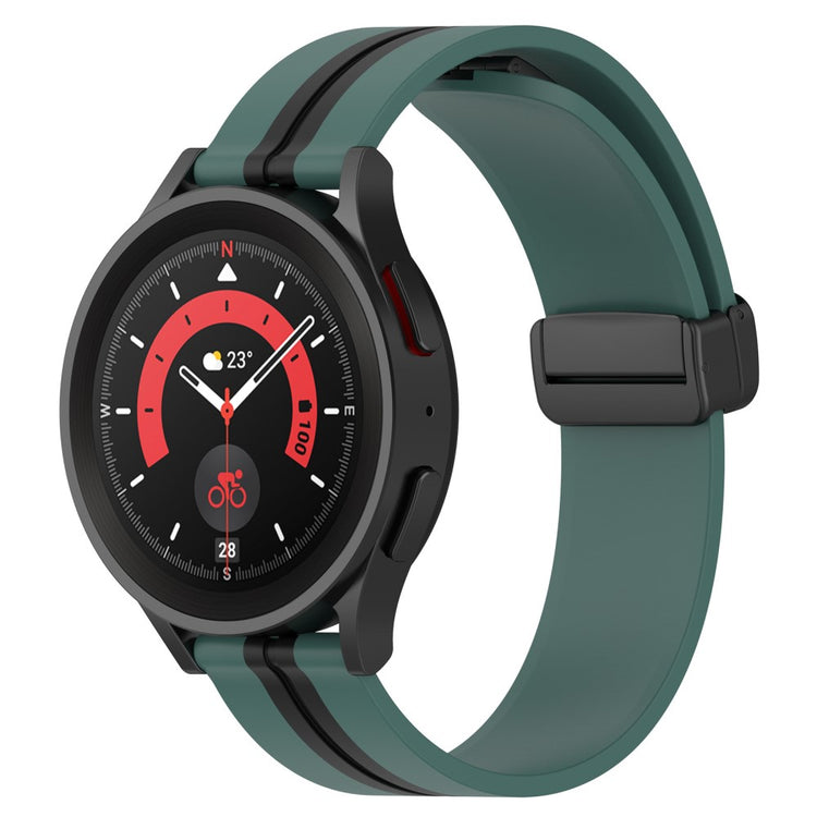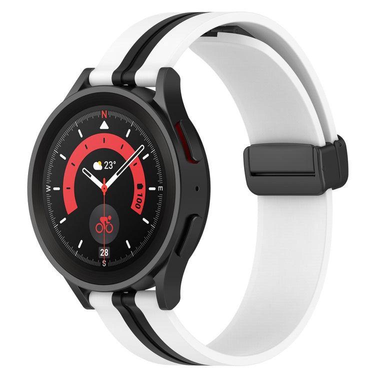 Oppgrader din smartwatch med vårt stilige og komfortable siliconarmbånd designet for å passe til flere modeller, inkludert Samsung Galaxy Watch5, Watch4 og mange andre. Laget av mykt silikonmateriale, er dette armbåndet behagelig å ha på, selv ved lengre bruk. Den unike magnetiske foldelåsen gjør det enkelt å ta av og på klokken, noe som gir deg maksimal bekvemmelighet i hverdagen. Med sitt moderne design, er dette armbåndet en perfekt erstatning for ditt gamle eller ødelagte armbånd, og det er enkelt å installere og fjerne. Passer håndleddsomkrets fra 5,6 til 8,5 tommer, gir det en behagelig passform på de fleste håndledd. Oppgrader stilen din og gi din smartwatch det utseendet den fortjener – en enkel, men stilfull løsning for alle som ønsker å kombinere funksjonalitet med mote.