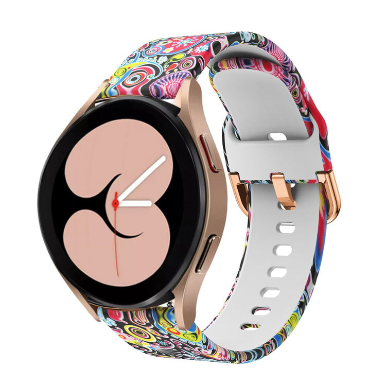 Oppgrader stilen din med dette justerbare silikonarmbandet til Samsung Galaxy Watch6 (40mm og 44mm) og andre kompatible modeller! Laget av miljøvennlig silikon, er dette armbandet både slitesterkt og behagelig å ha på. Den fascinerende trykte designen gir et personlig preg som skiller seg ut, og gjør klokken din mer unik og stilfull. Armbandet er også lett å justere for å passe perfekt rundt håndleddet ditt, noe som gir deg optimal komfort. Dette gjør det til en ideell erstatning for et gammelt eller ødelagt armbånd. Med en bredde på 20mm og en vekt på kun 20g, er dette armbåndet lett og praktisk, perfekt for enhver anledning. Ikke gå glipp av muligheten til å fornye klokkeopplevelsen din med dette kvalitetsarmbåndet!