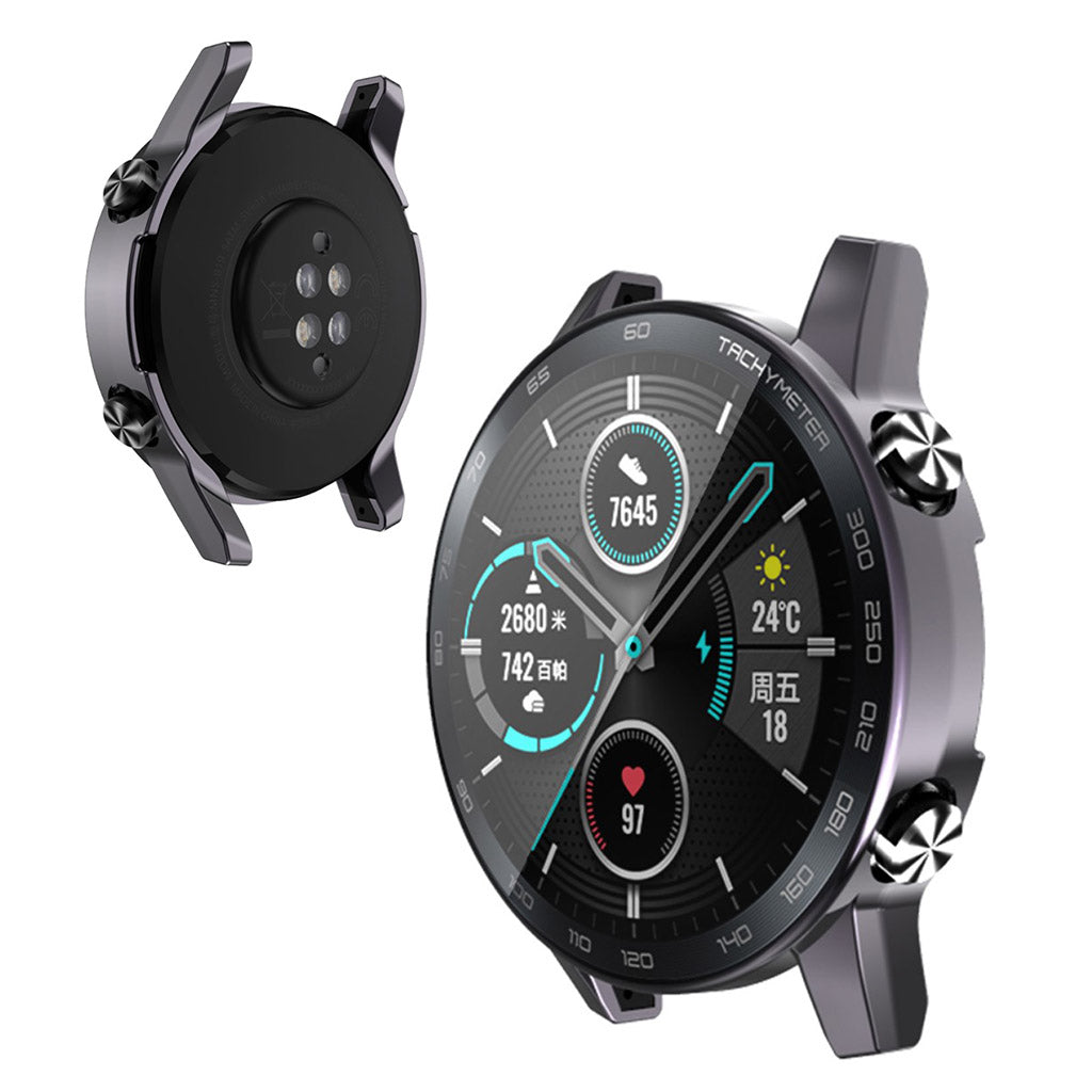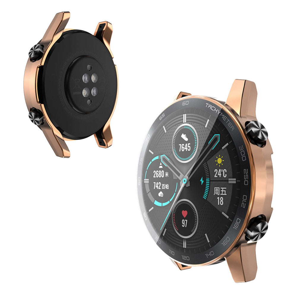 Oppgrader beskyttelsen til din Huawei Honor Magic 2 46MM med dette beskyttende dekselet laget av kvalitets TPU-materiale. Dette dekslet er slitesterkt og motvirker gulfarging, slik at det holder seg fresh over tid. Med sin elektropletterte utførelse gir det en imponerende, metallisk glans som hever utseendet på smartklokken din. Nøyaktige utskjæringer sikrer at du får en problemfri bruk av knapper og funksjoner, samtidig som dekselet gir full beskyttelse mot riper og støt. Det er enkelt å installere og fjerne, noe som gjør det praktisk for daglig bruk. Beskytt klokken din med stil og kvalitet!