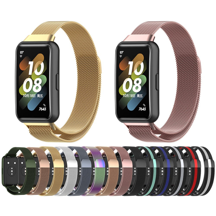 Erstatningsrem for Huawei Band 7/Honor Band 7 med magnetisk lukking og justerbar metallarmbånd gir et luksuriøst og holdbart tilbehør. Den eksklusive håndverkskvaliteten sørger for at hver detalj er perfekt utformet, noe som gir både stil og funksjonalitet. Denne klokken er ideell for arbeid, fritid og sosiale anledninger, enten det er møter, fester eller reise.