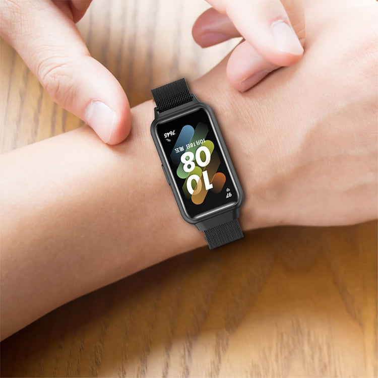 Oppgrader stilen din med dette erstatningsurremmen til Huawei Band 7/Honor Band 7. Laget av høykvalitets rustfritt stål, tilbyr denne urremmen både luksus og holdbarhet. Den eksepsjonelle håndverkskvaliteten sikrer at hvert detalj er omhyggelig vurdert, noe som gir en elegant og sofistikert følelse. Den unike magnetiske låsen gir ekstra beskyttelse for klokken din, samtidig som den kombinerer mote og funksjonalitet. Enten du skal på en date, møte, fest eller reise, er denne remmen perfekt for både formelle og dagligdagse anledninger. Med en justerbar størrelse som passer håndledd fra 5.5" til 8.7", og designet for å være kompatibel med Huawei Band 7 og Honor Band 7, er dette et ideelt valg for dem som ønsker å kombinere stil med funksjonalitet. Ikke gå glipp av muligheten til å heve utseendet ditt med denne praktiske og stilige urremmen!