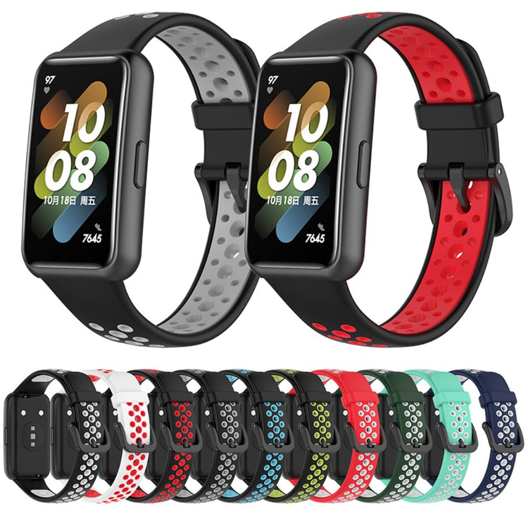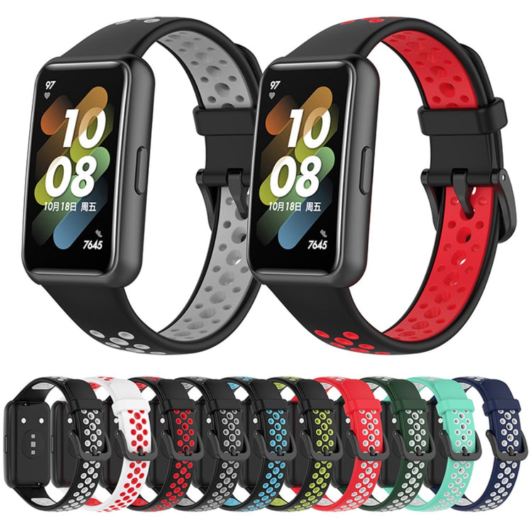 Denne silikonreimen er designet for Huawei Band 7 og er laget av miljøvennlig silikonmateriale som er slitesterkt og motstandsdyktig mot slitasje. Den ergonomiske designen gjør den myk og behagelig å ha på.