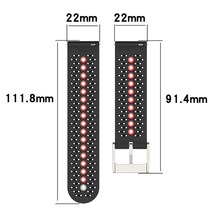 Denne 22mm dualfargede silikonremmen er et ideelt erstatningsalternativ for din gamle, ødelagte klokkerem. Laget av miljøvennlig silikon, er den myk og behagelig å ha på, samtidig som den er motstandsdyktig mot slitasje. Den innovative designen med flere hull gjør det enkelt å justere størrelsen for å passe håndleddet ditt.
