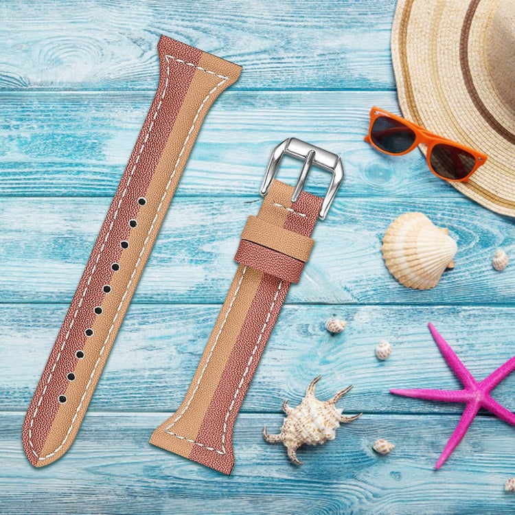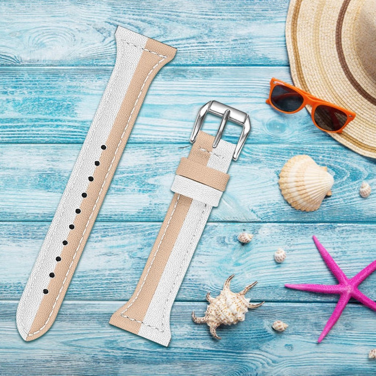 Oppgrader smartklokken din med denne stilige og komfortable reimen i ekte lær. Med et kontrastfarget design gir denne reimen klokken din et nytt og elegant utseende. Den er laget av høykvalitets ekte lær som er mykt og behagelig mot huden.