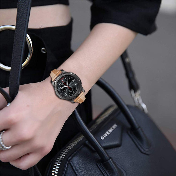 Dette er et 22mm universelt armbånd laget av ekte lær, perfekt for din Huawei Watch GT 2 46mm eller Amazfit GTR 47mm. Armbåndet har en metallspenne for enkelt å ta på og av, samt justeringshull som gir deg mulighet til å tilpasse det etter din størrelse. Et ideelt alternativ for å erstatte ditt gamle eller ødelagte armbånd, og sikrer både stil og komfort.