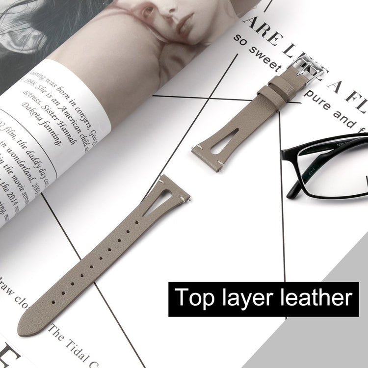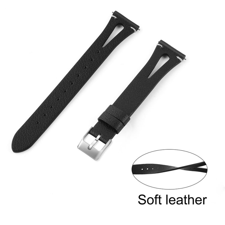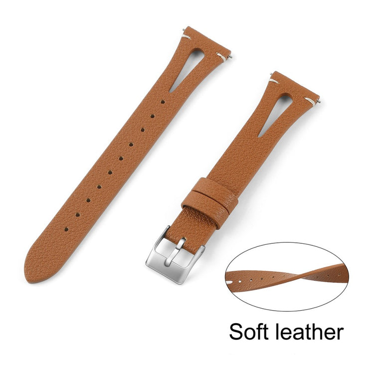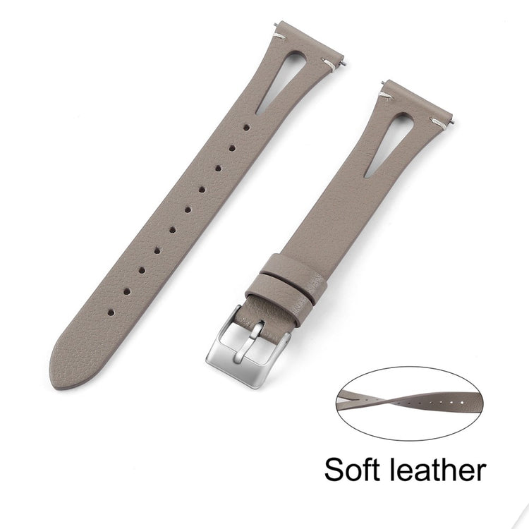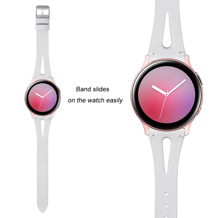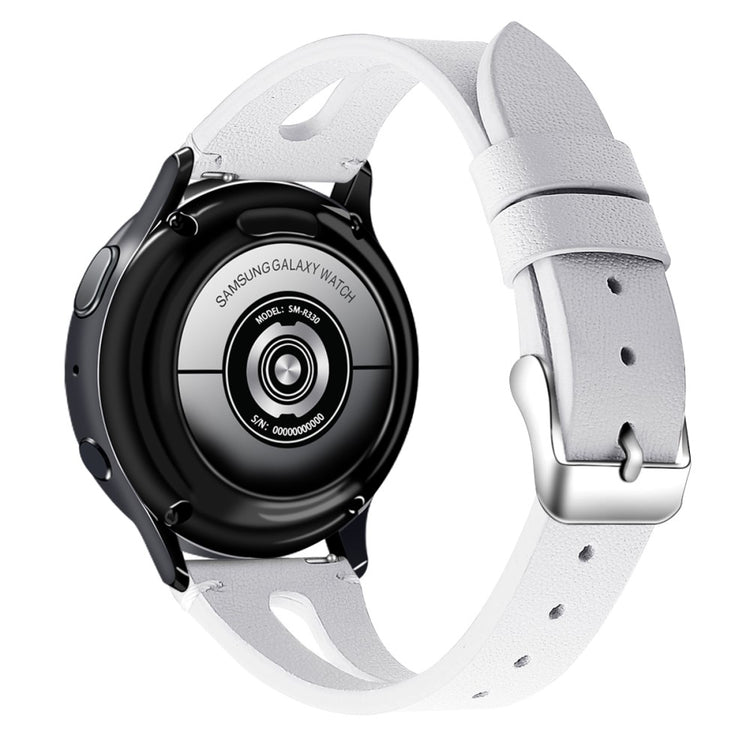 Dette er et mykt og lett klokkerem av ekte lær med utskjæringer, som gjør at du nesten glemmer at du har det på deg. Remmen kan enkelt justeres for å tilpasses individuelle håndleddsstørrelser, og fungerer perfekt som en erstatning for en gammel eller ødelagt rem. Den er kompatibel med flere modeller som Samsung Galaxy Watch Active og Gear S2, samt andre smartklokker med standard 20 mm fester.