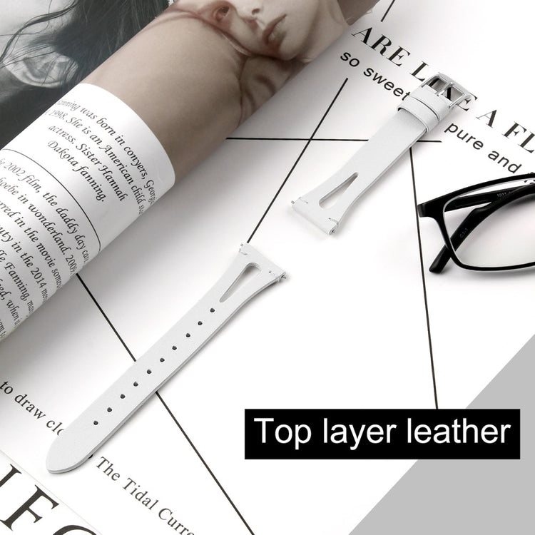 Oppgrader ditt smartwatch med et 20mm mykt ekte lærrem som kombinerer eleganse og komfort. Denne remmen er designet med utsparinger, noe som gjør den lett og myk, slik at du kan glemme at du har den på deg. Den kan enkelt justeres i størrelse for å passe perfekt til din håndledd, noe som gir deg muligheten til å finne den ideelle passformen uansett omstendighet. Dette er en ideell erstatning for din gamle, ødelagte rem, og installasjonen er både enkel og rask. Remmen er kompatibel med flere populære smartwatch-modeller som Samsung Galaxy Watch Active, Watch3, Gear S2, og mange flere, noe som gjør den til et fleksibelt valg for alle som ønsker å fornye stilen sin. Husk at denne remmen ikke er laget for langvarig bruk under krevende forhold, og bør beskyttes mot sollys og vann. Med en ny klokkerem vil du ikke bare forbedre utseendet på klokken din, men også oppleve bedre komfort gjennom dagen!
