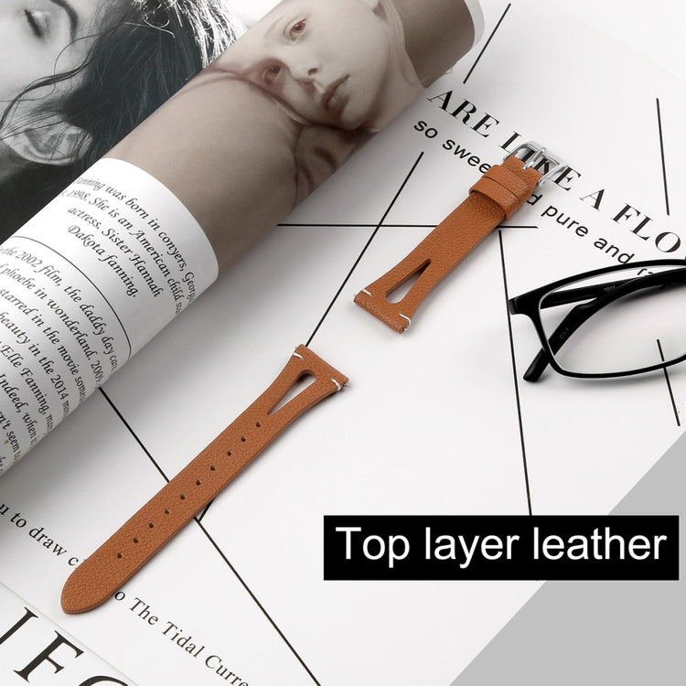 Denne ekte lærreimen på 20 mm er designet med utskjæringer som gjør den lett og myk. Du vil kanskje til og med glemme at du har den på! Størrelsen kan justeres etter omkretsen på håndleddet ditt, fra ca. 14 cm til 20,5 cm. En ideell erstatning for din gamle, slitte reim.