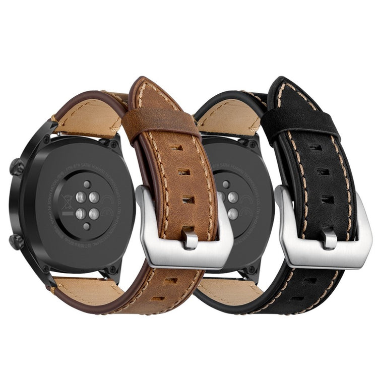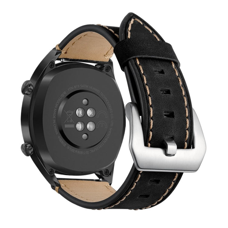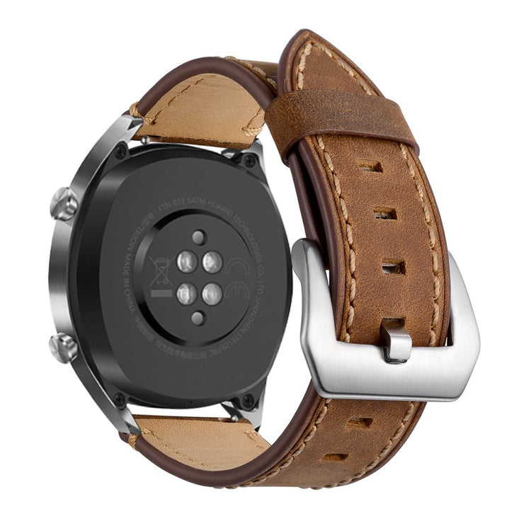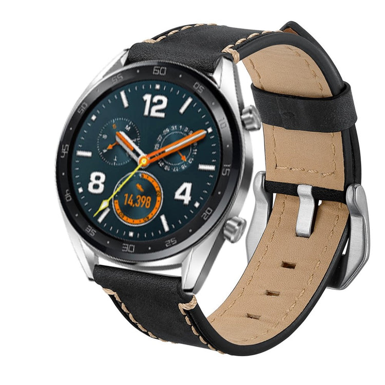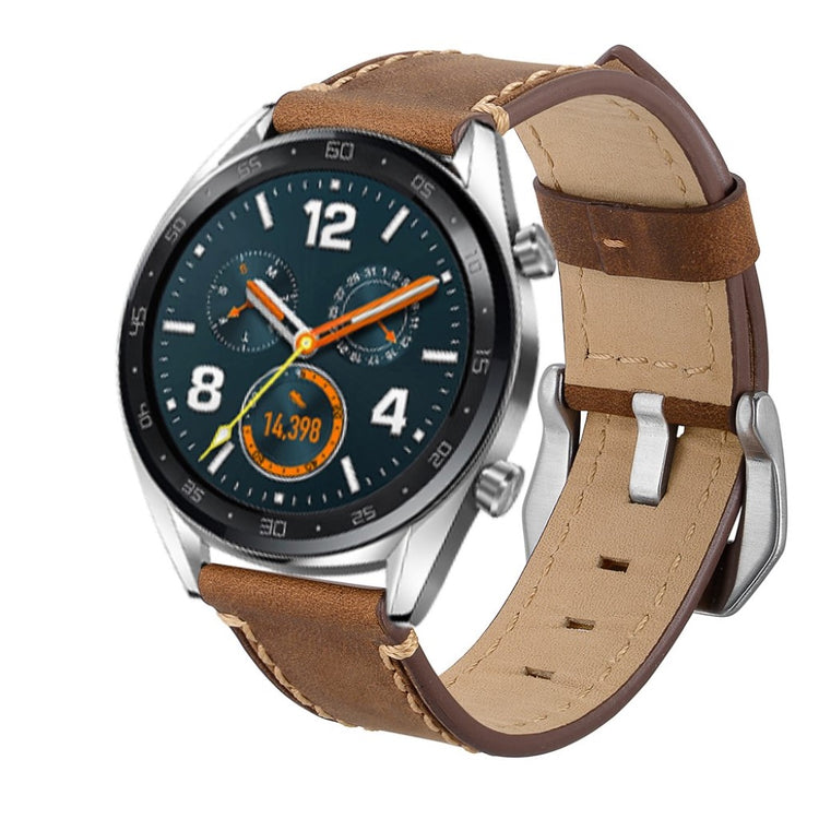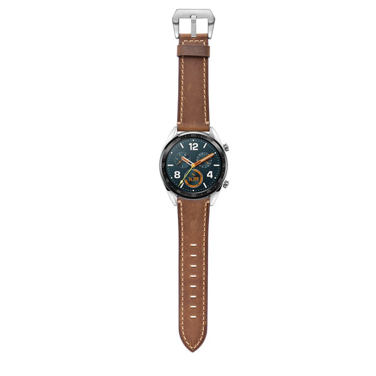Oppgrader stilen din med et armbånd laget av ekte lær, designet spesielt for smartklokker som Huawei Watch GT og Watch 2. Dette armbåndet kombinerer høy kvalitet med eksepsjonell komfort. Den myke og holdbare lærkvaliteten gir en luksuriøs følelse på håndleddet, mens det delikate teksturmønsteret tilfører en elegant touch til klokken din. Den holdbare spennen gjør det enkelt å ta armbåndet av og på, hva enten du er på jobb eller trening. Med flere justeringshull kan du enkelt tilpasse størrelsen for en perfekt passform. Det er det ideelle erstatningsarmbåndet for din gamle eller ødelagte klokkerem, og passer til en rekke modeller fra kjente merker. Gå ikke glipp av muligheten til å gi klokken din et nytt og stilfullt utseende med dette flotte armbåndet!