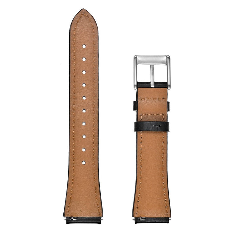 Denne stilige reimen i ekte lær gir smartklokken din et klassisk og elegant utseende. Med moderat mykhet er den behagelig å ha på, og den klassiske metallspennen gjør den enkel å ta av og på. Hullene i reimen sørger for enkel justering til din størrelse. En ideell erstatning for din gamle, slitte reim.