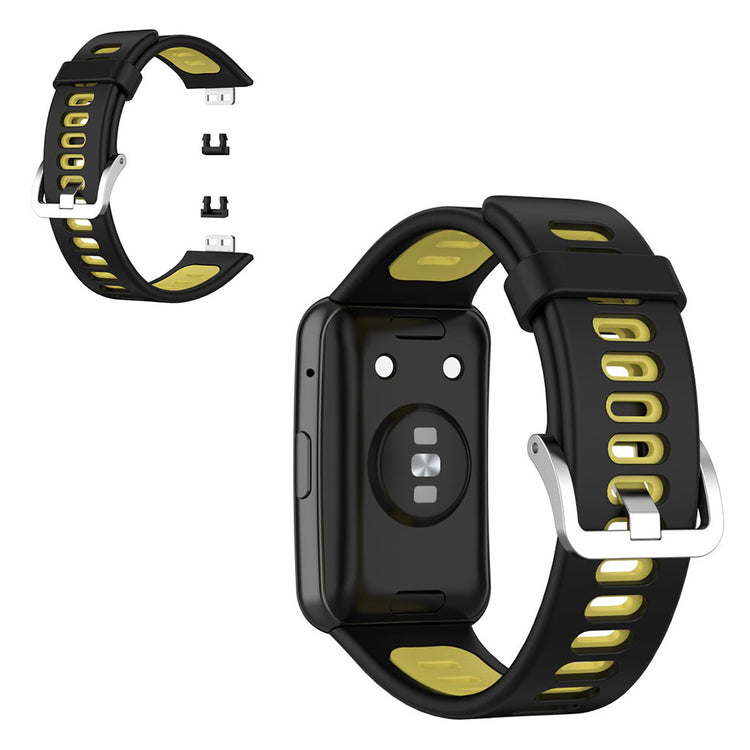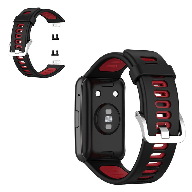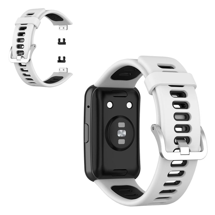 Å oppgradere klokkeremmen til din Huawei Watch Fit er en smart investering. Denne dual color silikon klokkeremmen er laget av premium silikon, som sikrer langvarig bruk og holdbarhet. Med sin moderat mykhet gir den en komfortabel opplevelse, enten du bruker klokken til hverdags eller under trening. De praktiske hullene på remmen gjør det enkelt å justere størrelsen, slik at du får den perfekte passformen. Hvis din gamle rem er ødelagt eller slitt, er dette den ideelle erstatningen som samtidig gir et fresht utseende. Den er også enkel å installere og fjerne, noe som gjør bytte av rem til en lek. Gjør klokken din mer personlig og komfortabel med denne kvalitetsremmen!