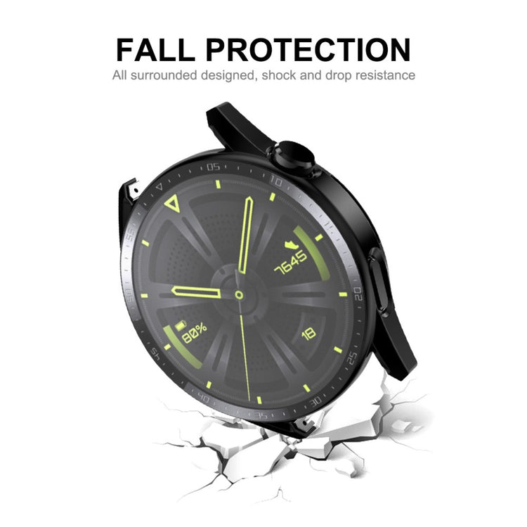 Beskytt din Huawei Watch GT 3 46mm med et etui laget av førsteklasses PC-materiale som er både lett og robust. Dette etuiet har en innebygd 9H herdet glassbeskyttelse som beskytter skjermen mot daglige skader, samtidig som det gir en matte og gummifisert overflate som er behagelig å holde. Etuiet tillater lading uten å fjerne dekselet og er designet for å være støt- og fallbestandig.