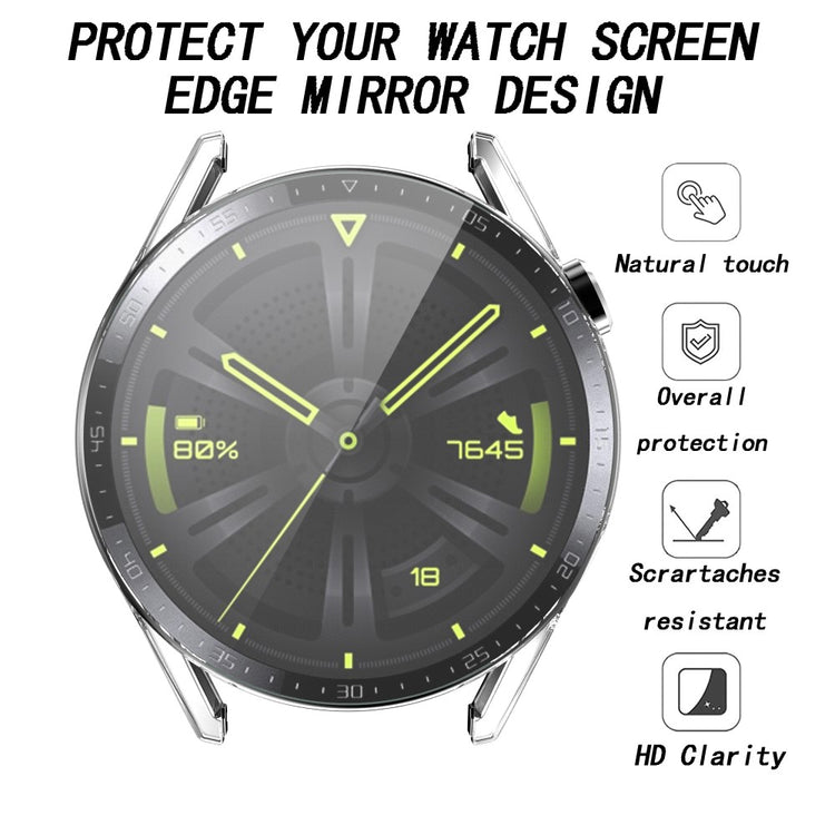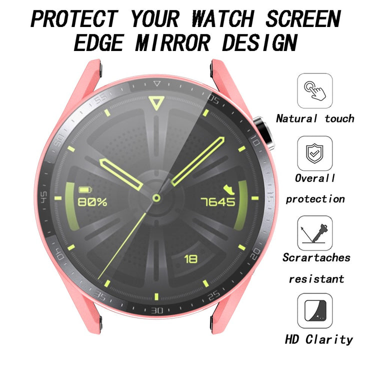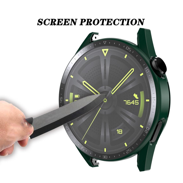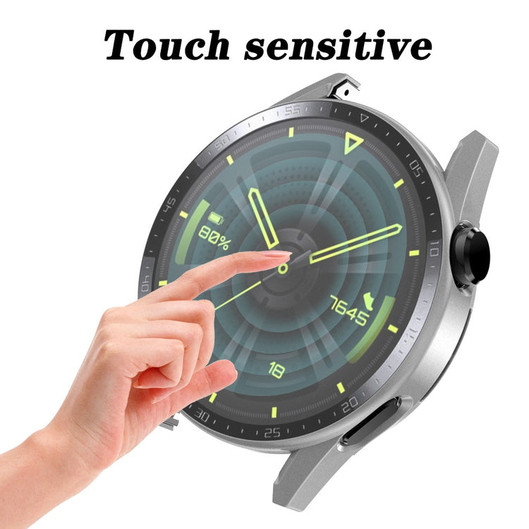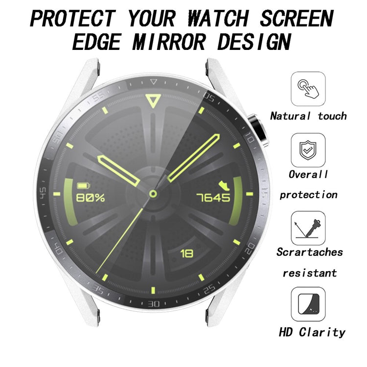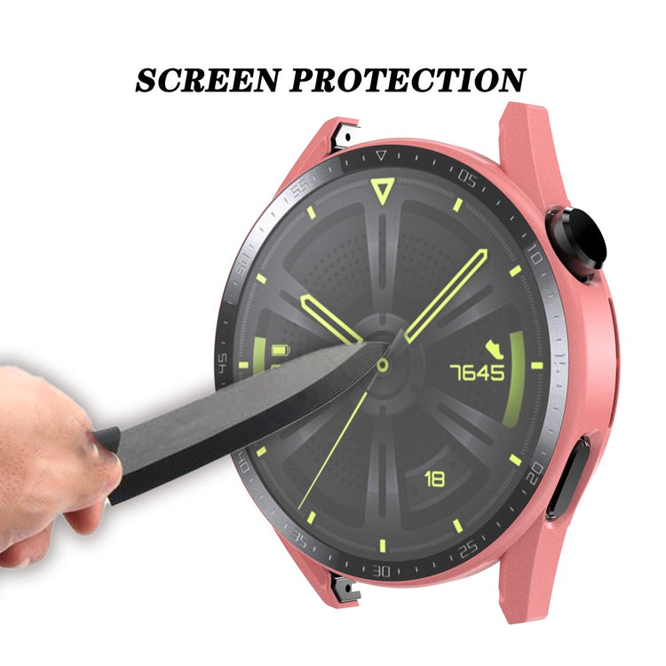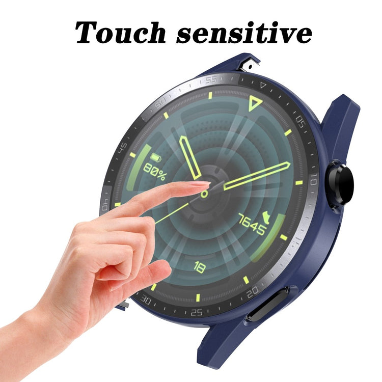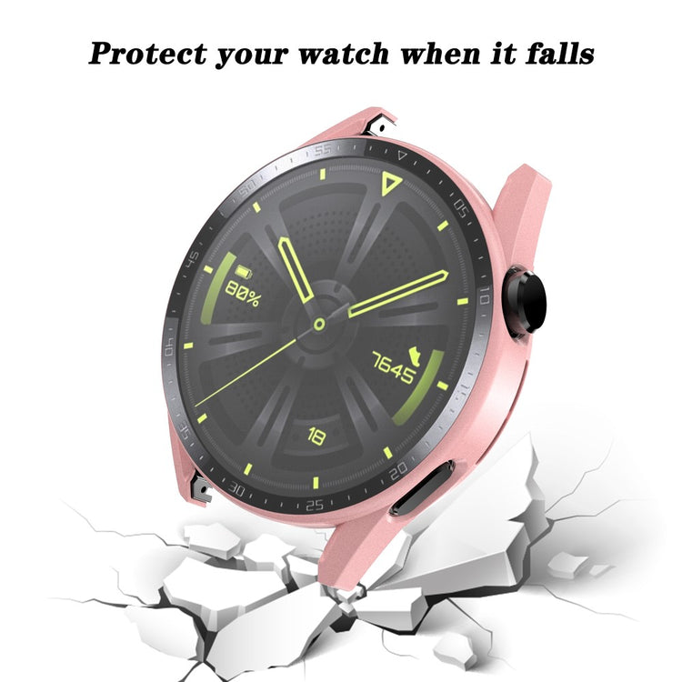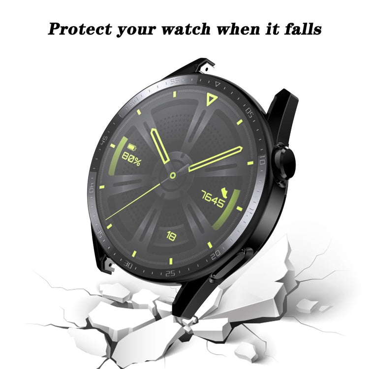 Dette matte hardcase-dekselet i PC-materiale med innebygd HD-beskyttelse av herdet glass dekker både skjermen og kantene på din Huawei Watch GT 3 46mm. Det gir 360 graders beskyttelse mot riper, støt og fall.